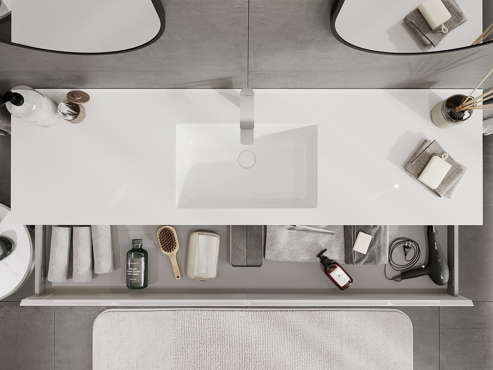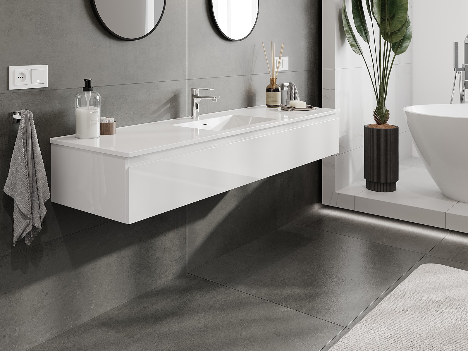 Onze modulaire badkamermeubels kunnen in verschillende kleurconfiguraties met elkaar worden gecombineerd, wat volledige personalisatie mogelijk maakt. Zowel het uiterlijk als de functies van de afzonderlijke elementen kunnen worden gekozen, waardoor de meubels kunnen worden aangepast aan persoonlijke stijlvoorkeuren en gebruikswensen.