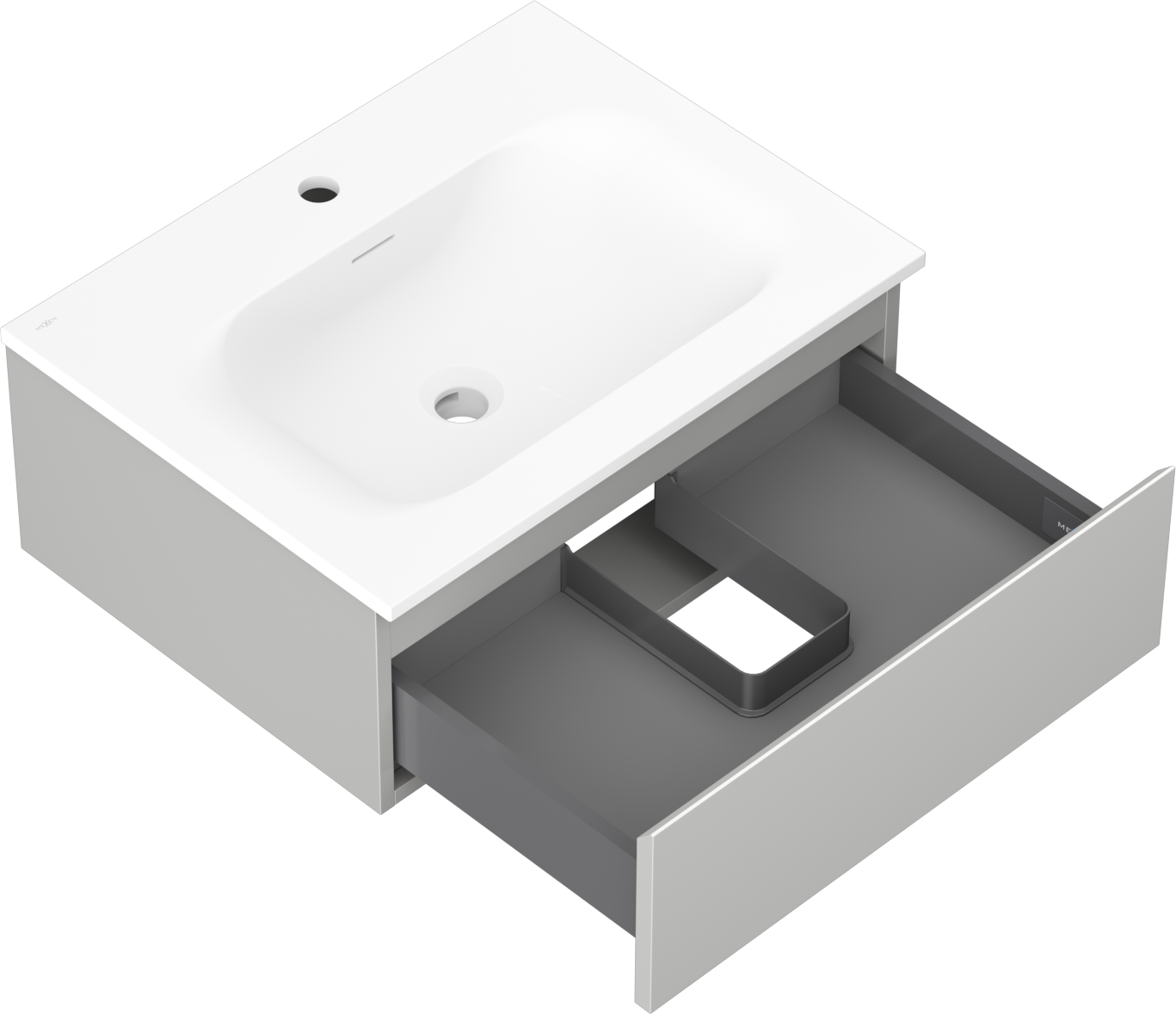 De uitsparing in de lade is zo ontworpen dat het de sifon kan bevatten, die noodzakelijk is in wastafelinstallaties. Hierdoor kan het meubel volledig functioneel worden gemonteerd, zonder dat er ruimte in de lade opgeofferd hoeft te worden voor installatiedoeleinden.