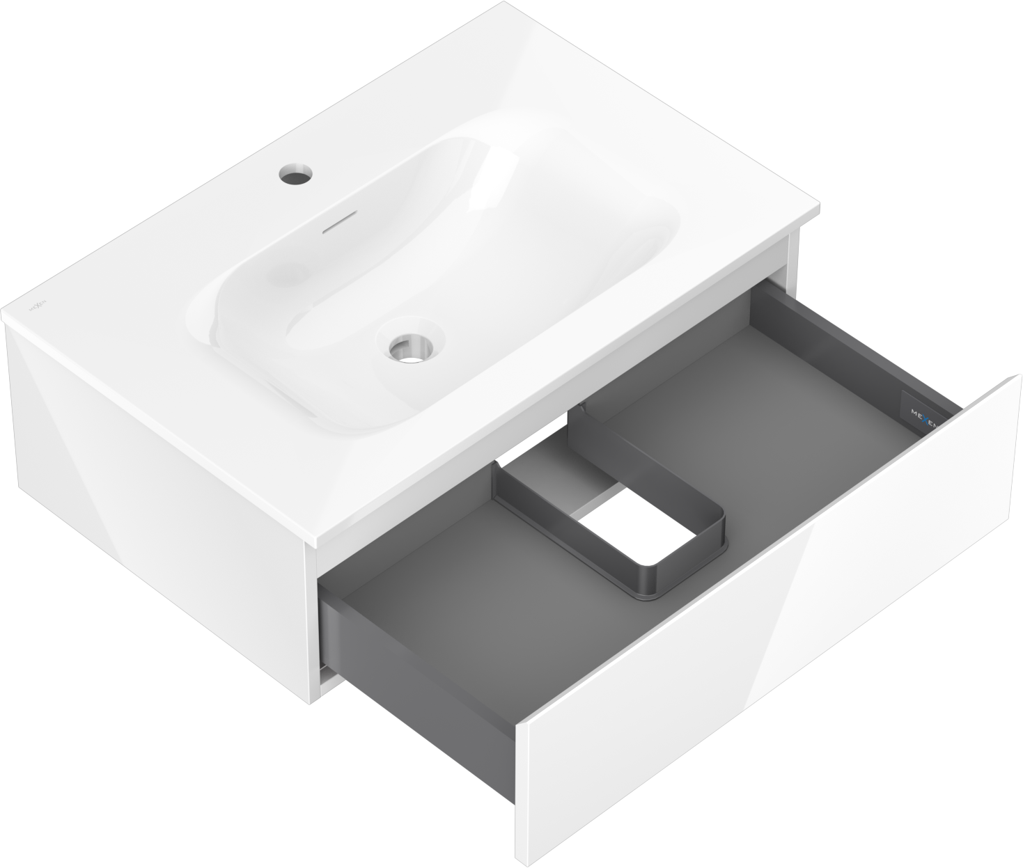 Mexen Orio badkamerkast 70 cm met wastafel Vela, 1 lade, wit glans - 91A10-07023-1-BF00-W23M00