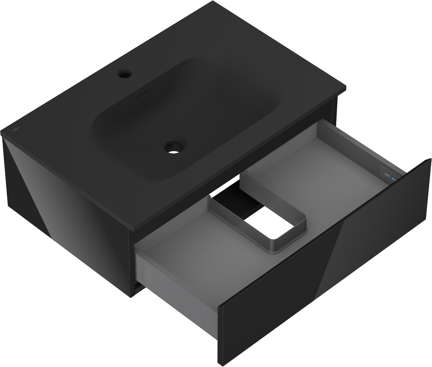 Mexen Orio badkamerkast 70 cm met wastafel Vela, 1 lade, zwart glans/zwart mat - 91A10-07023-1-BF70-W23M71