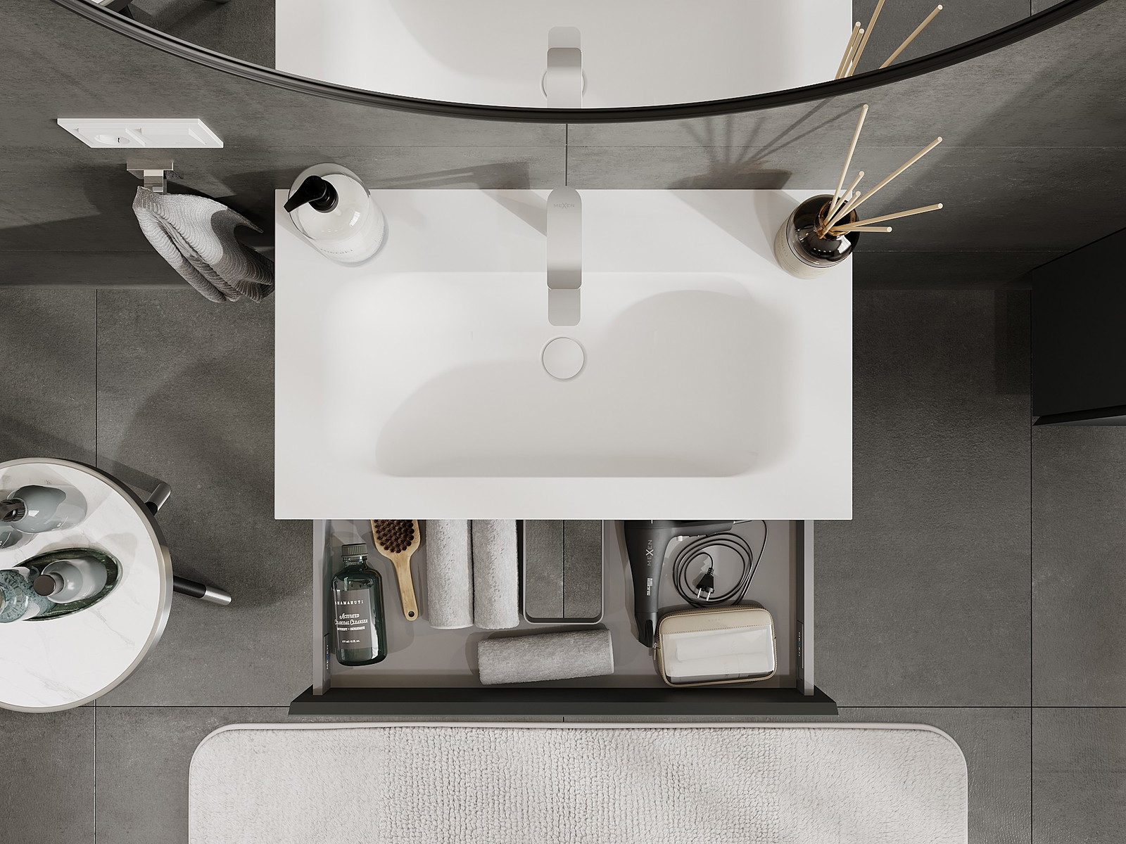 Mexen Orio badkamerkast 80 cm met wastafel Vela, 1 lade, grafiet mat/wit mat - 91A10-08023-1-BF66-W23M01
