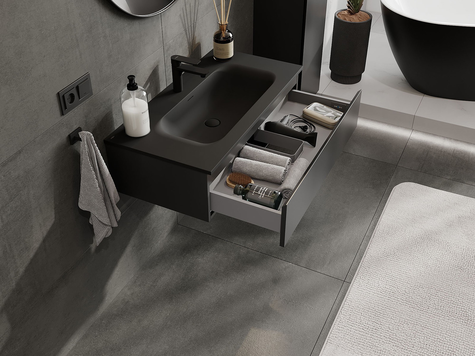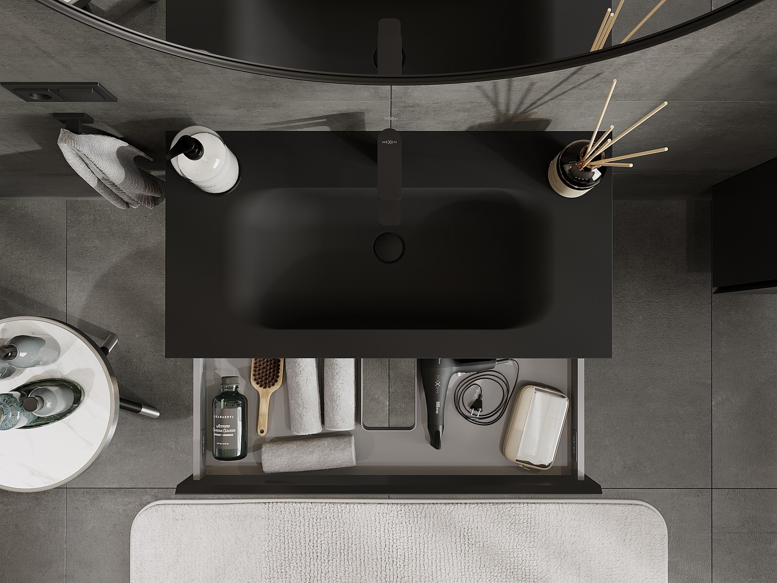Mexen Orio badkamerkast 90 cm met wastafel Vela, 1 lade, zwart mat - 91A10-09023-1-BF71-W23M71