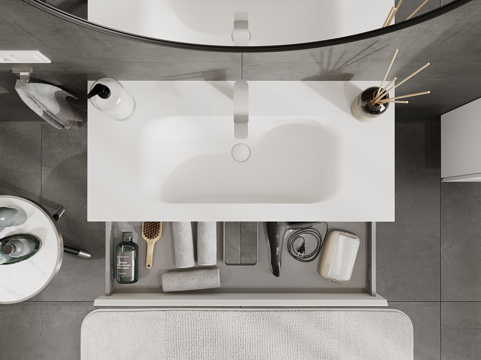 Mexen Orio badkamerkast 100 cm met wastafel Vela, 1 lade, wit mat - 91A10-10023-1-BF01-W23M01