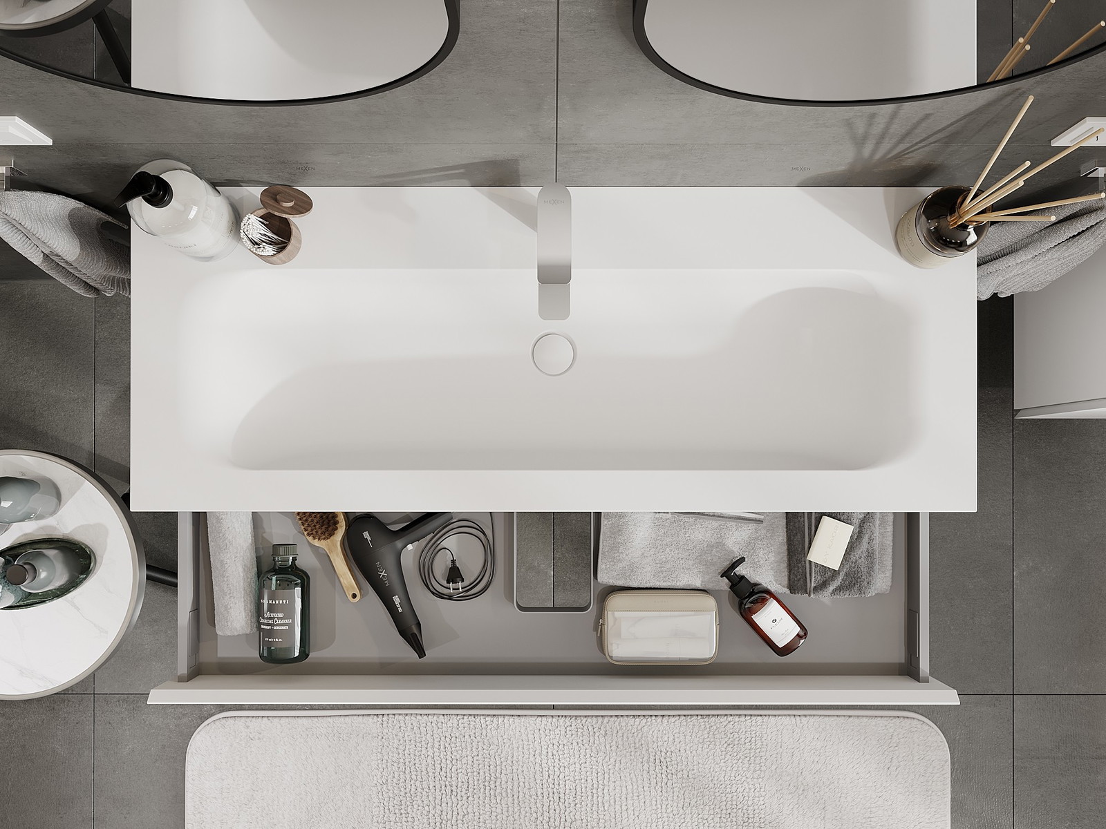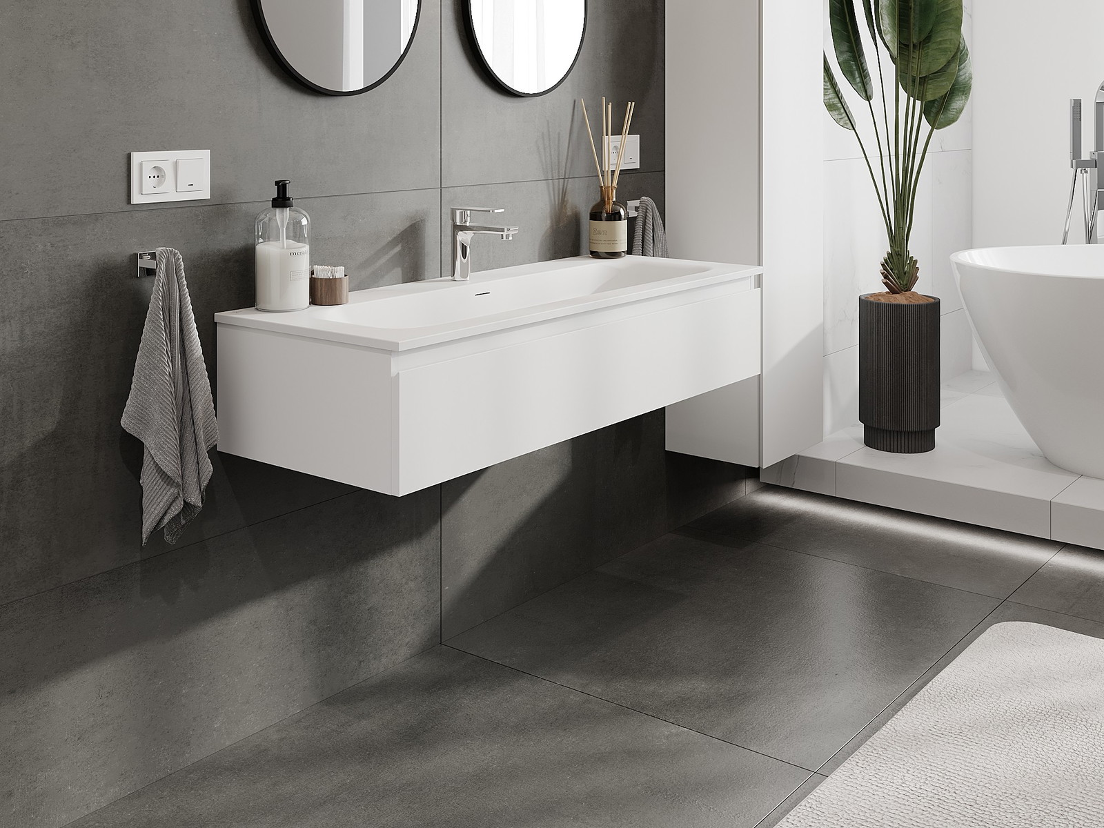 Onze modulaire badkamermeubels kunnen in verschillende kleurconfiguraties met elkaar worden gecombineerd, wat volledige personalisatie mogelijk maakt. Zowel het uiterlijk als de functies van de afzonderlijke elementen kunnen worden gekozen, waardoor de meubels kunnen worden aangepast aan persoonlijke stijlvoorkeuren en gebruikswensen.