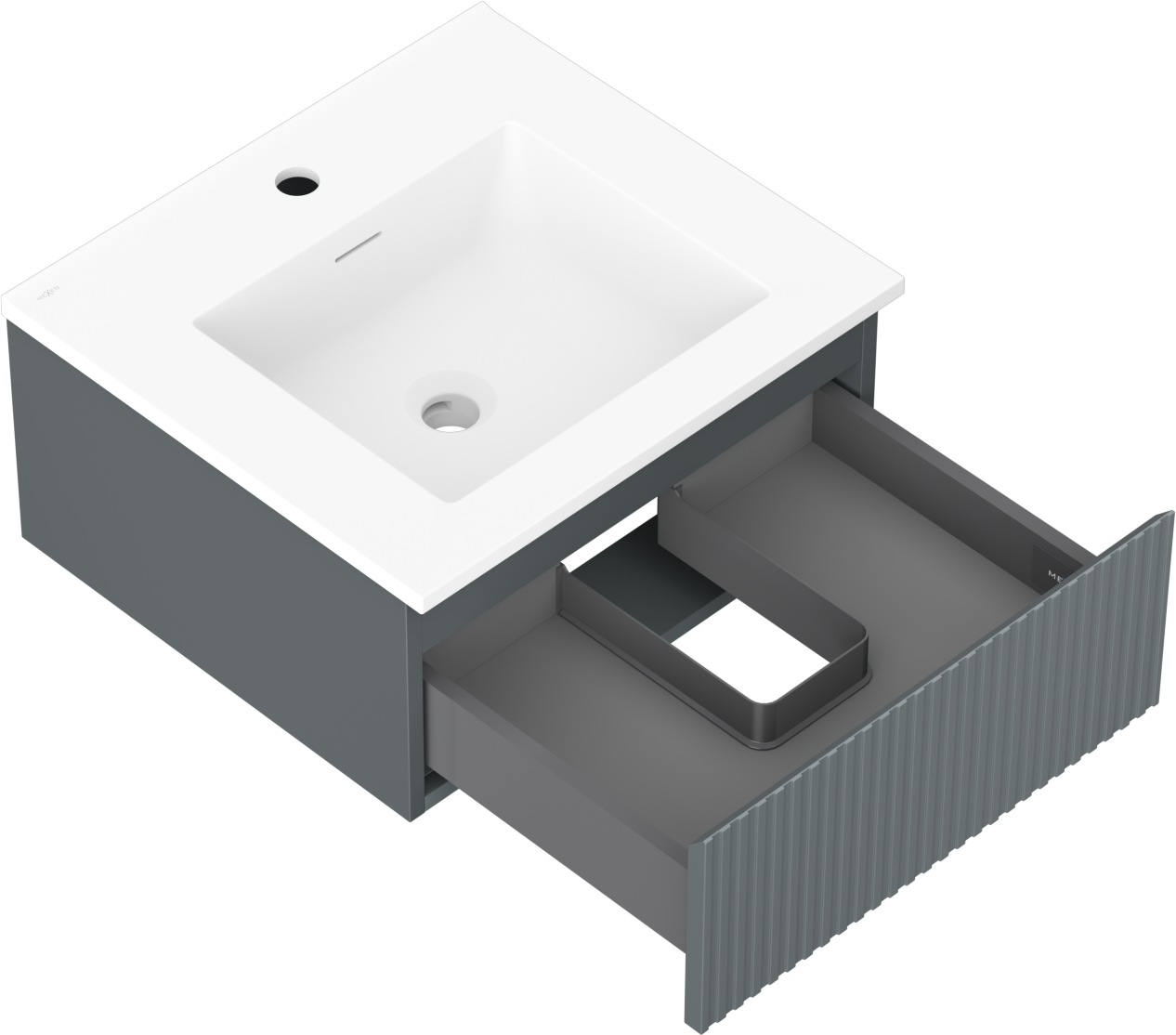 Mexen Rivel badkamerkastje 50 cm met Otis wastafel, 1 lade, gefreesd, grafiet mat/wit mat - 91A20-05023-1-BF66-W18M01