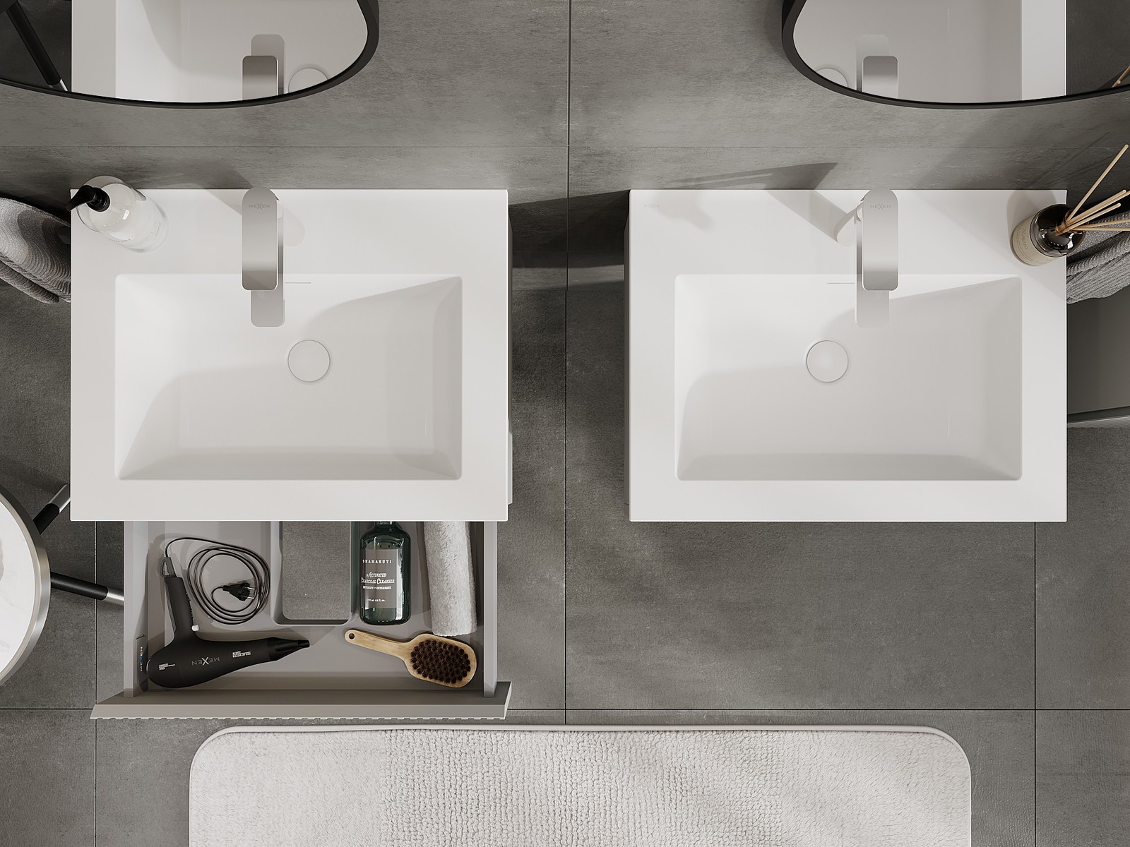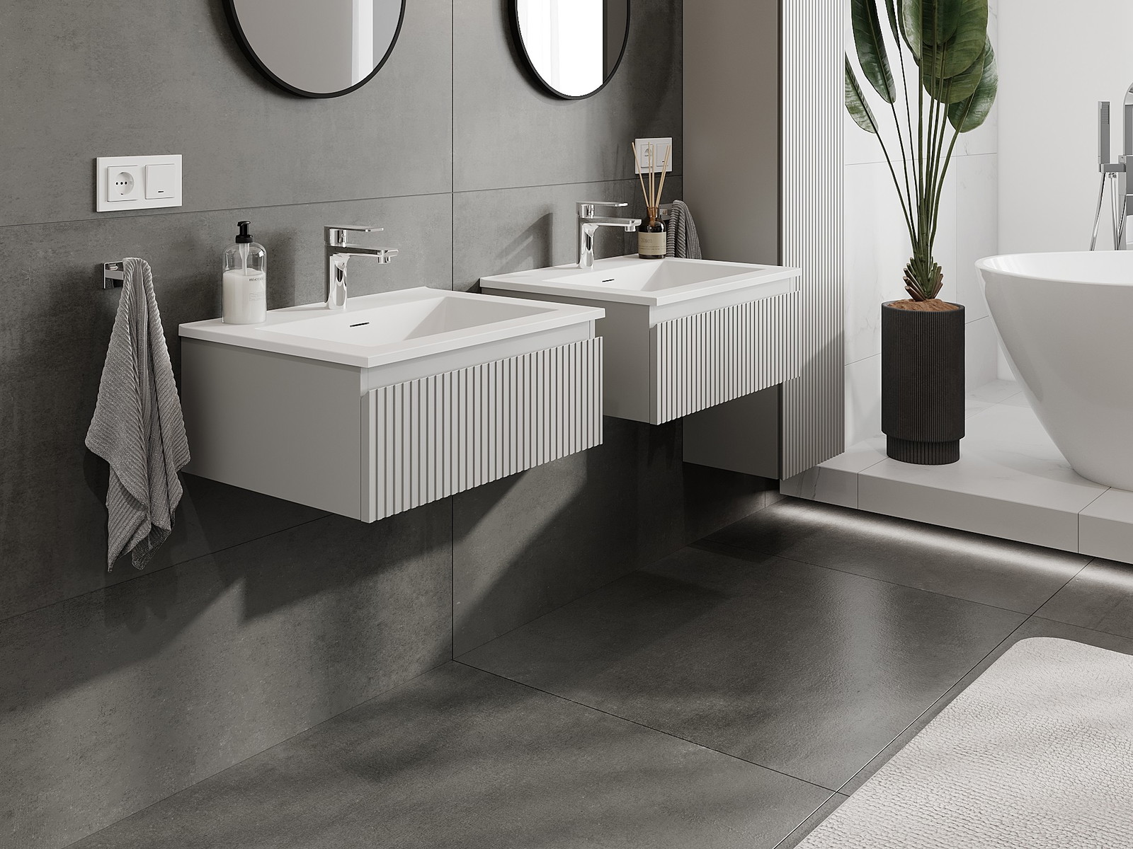 Onze modulaire badkamermeubels kunnen in verschillende kleurconfiguraties met elkaar worden gecombineerd, wat volledige personalisatie mogelijk maakt. Zowel het uiterlijk als de functies van de afzonderlijke elementen kunnen worden gekozen, waardoor de meubels kunnen worden aangepast aan persoonlijke stijlvoorkeuren en gebruikswensen.