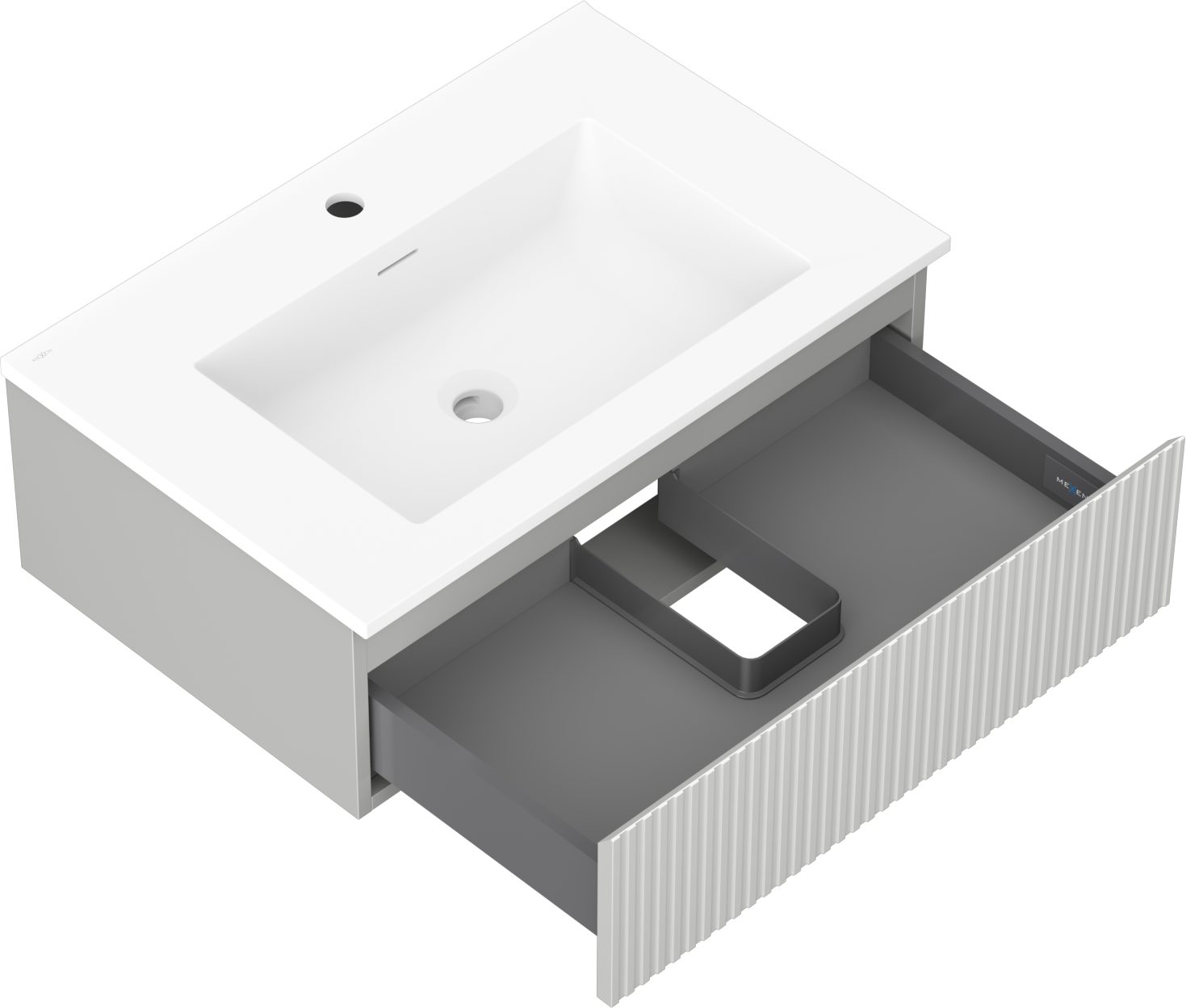 Mexen Rivel badkamerkast 70 cm met wastafel Otis, 1 lade, geribbeld, grijs mat/wit mat - 91A20-07023-1-BF62-W18M01