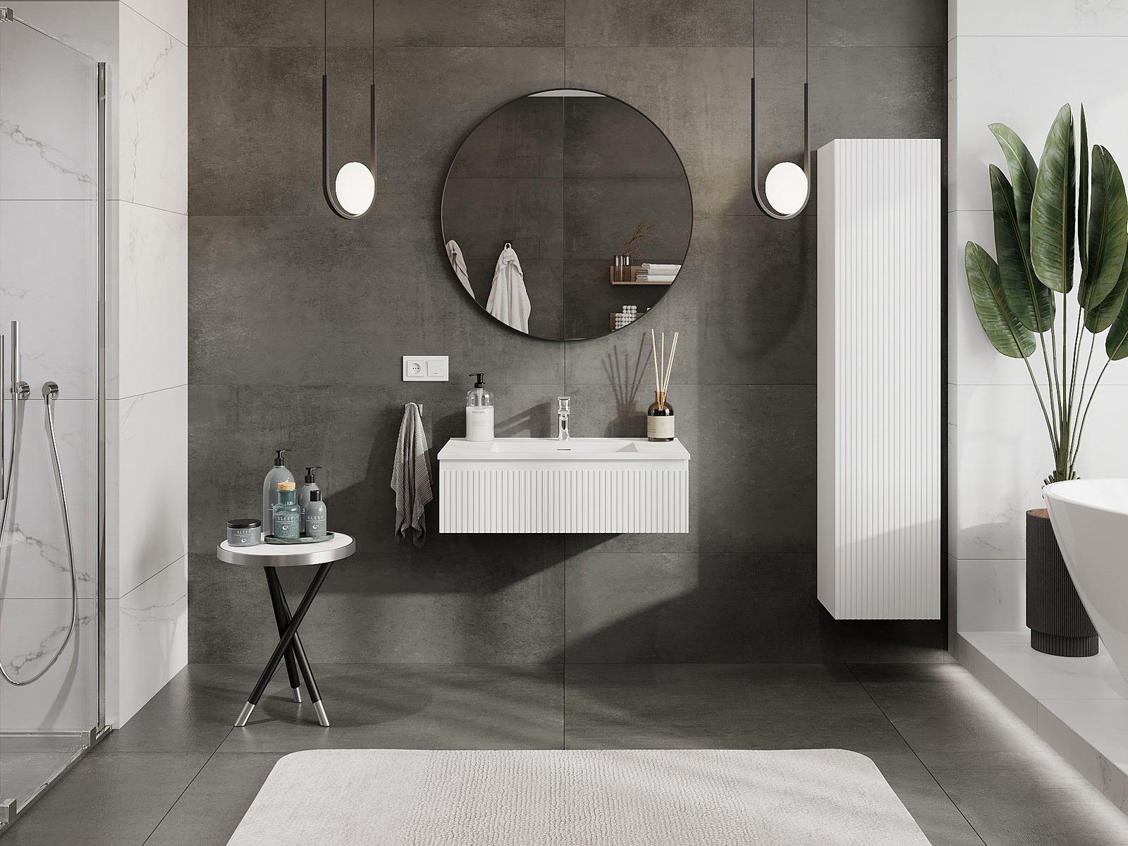 Mexen Rivel badkamerkast 80 cm met wastafel Otis, 1 lade, geribbeld, wit mat - 91A20-08023-1-BF01-W18M01