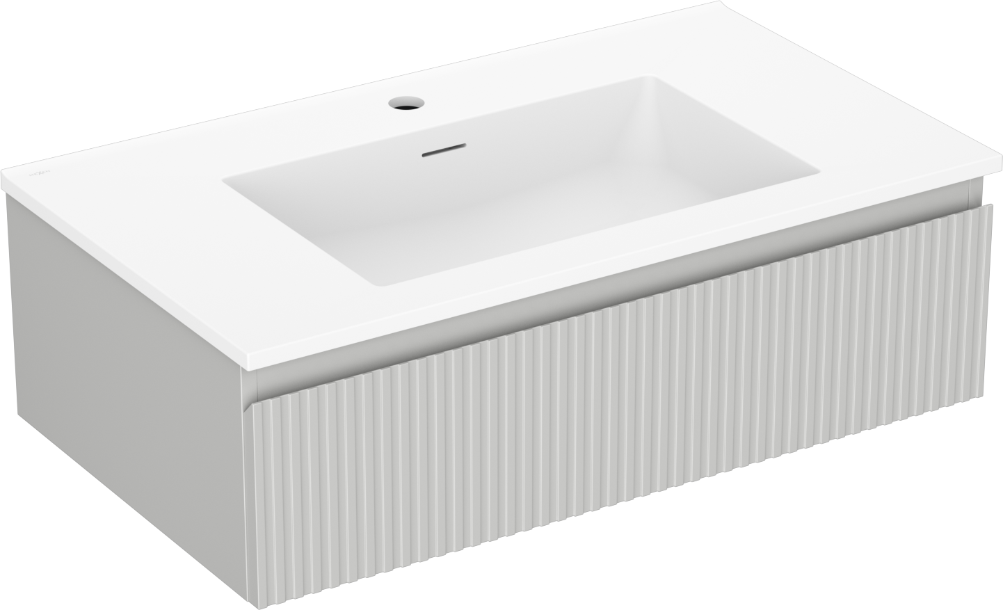 Mexen Rivel badkamerkast 80 cm met wastafel Otis, 1 lade, geribbeld, grijs mat/wit mat - 91A20-08023-1-BF62-W18M01