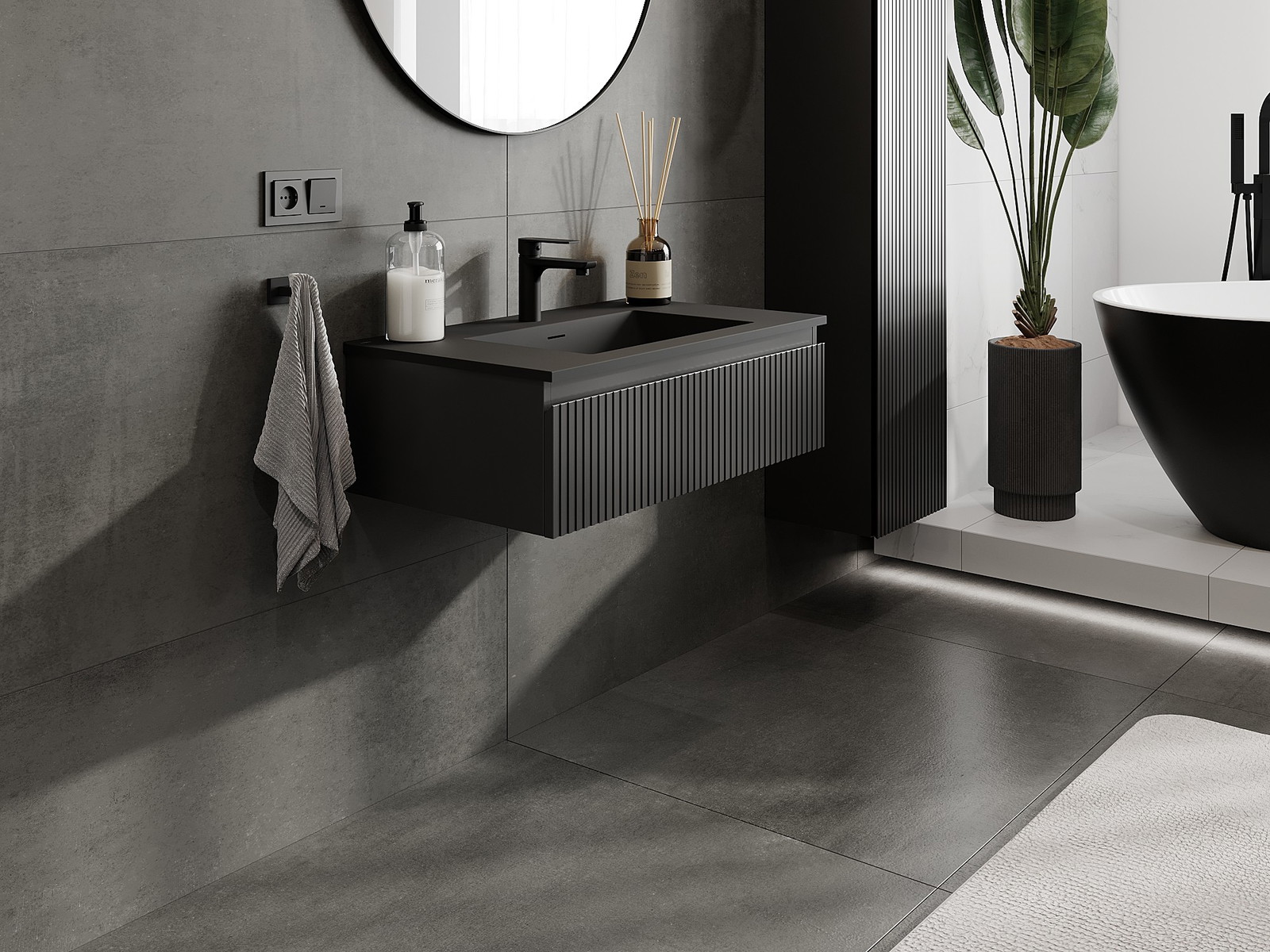 Mexen Rivel badkamerkast 80 cm met wastafel Otis, 1 lade, geribbeld, zwart mat - 91A20-08023-1-BF71-W18M71