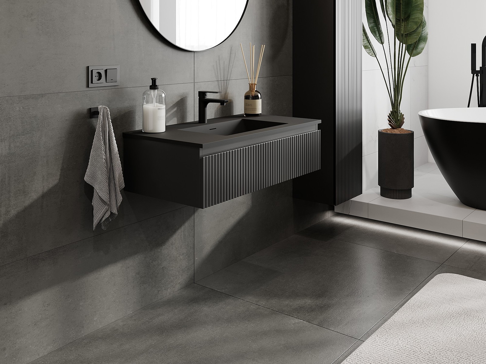 Mexen Rivel badkamerkastje 90 cm met wastafel Otis, 1 lade, geribbeld, zwart mat - 91A20-09023-1-BF71-W18M71