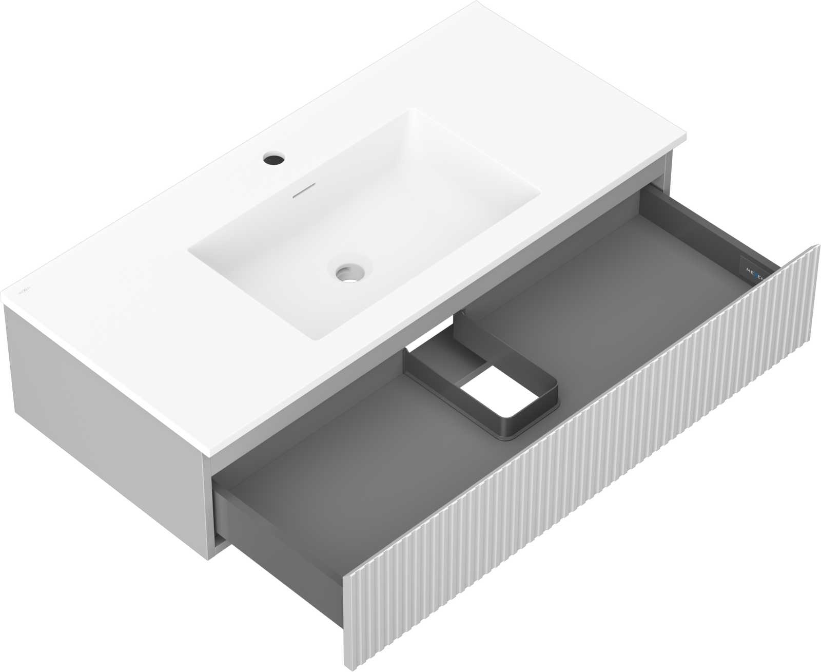 Mexen Rivel badkamerkast 100 cm met wastafel Otis, 1 lade, gegroefd, grijs mat/wit mat - 91A20-10023-1-BF62-W18M01