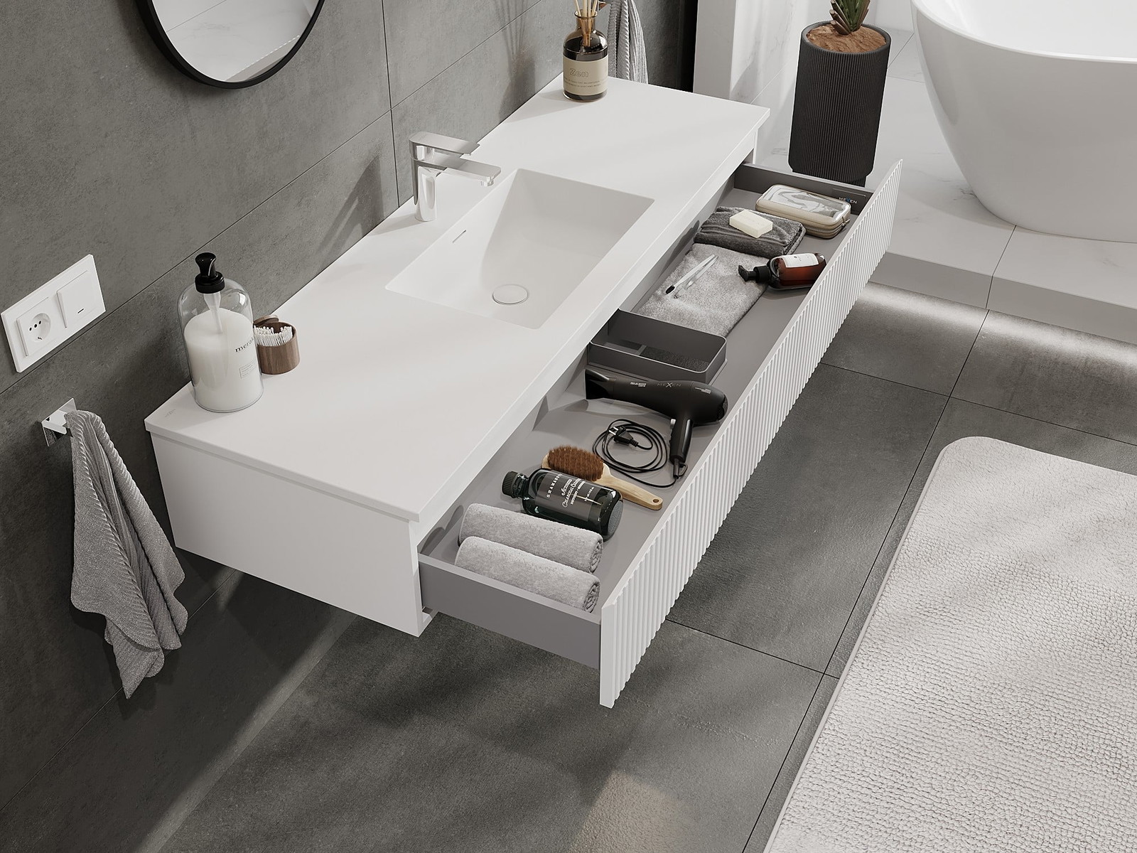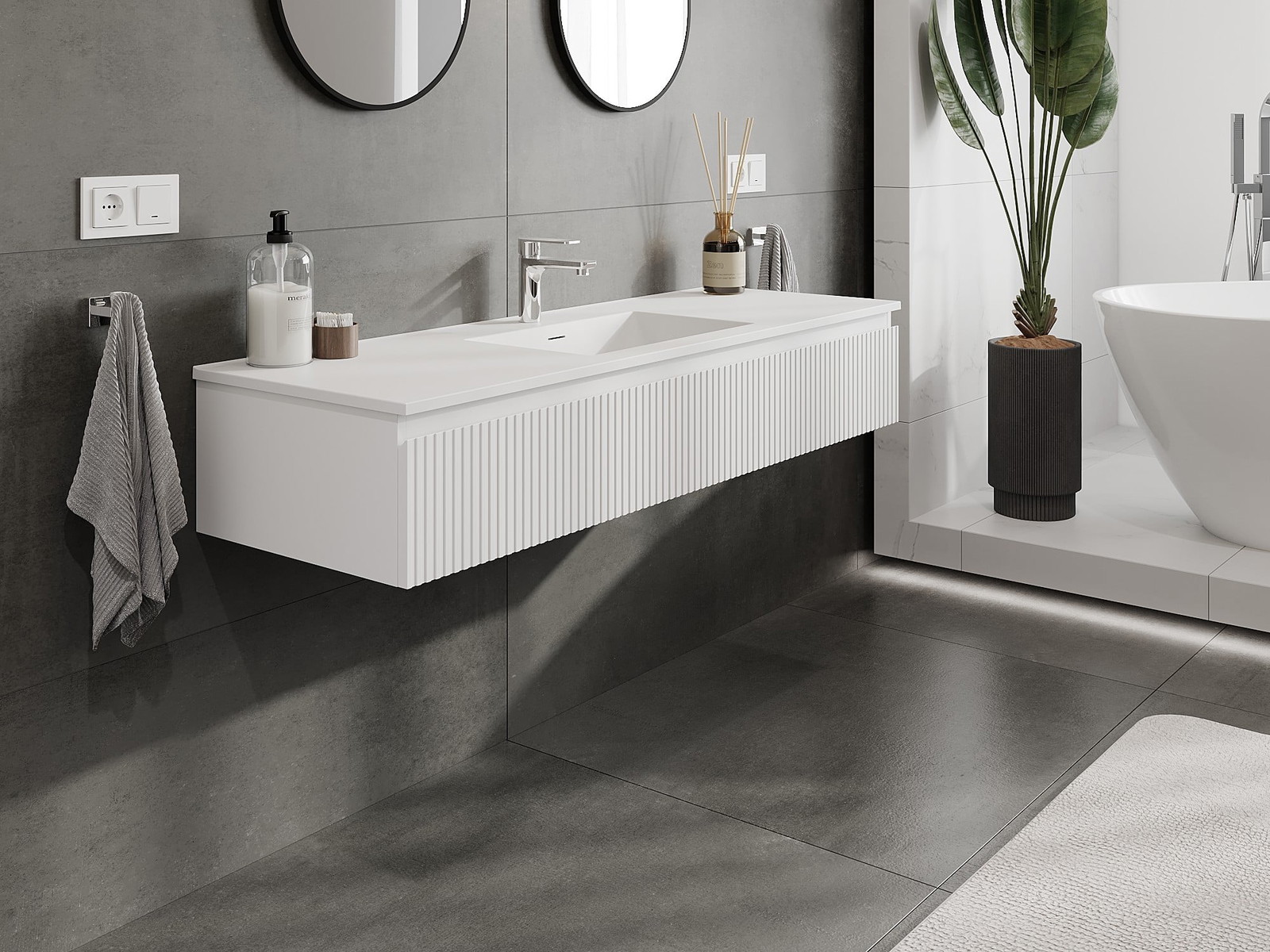 Mexen Rivel badkamerkast 140 cm met wastafel Otis, 1 lade, gegroefd, wit mat - 91A20-14023-1-BF01-W18M01