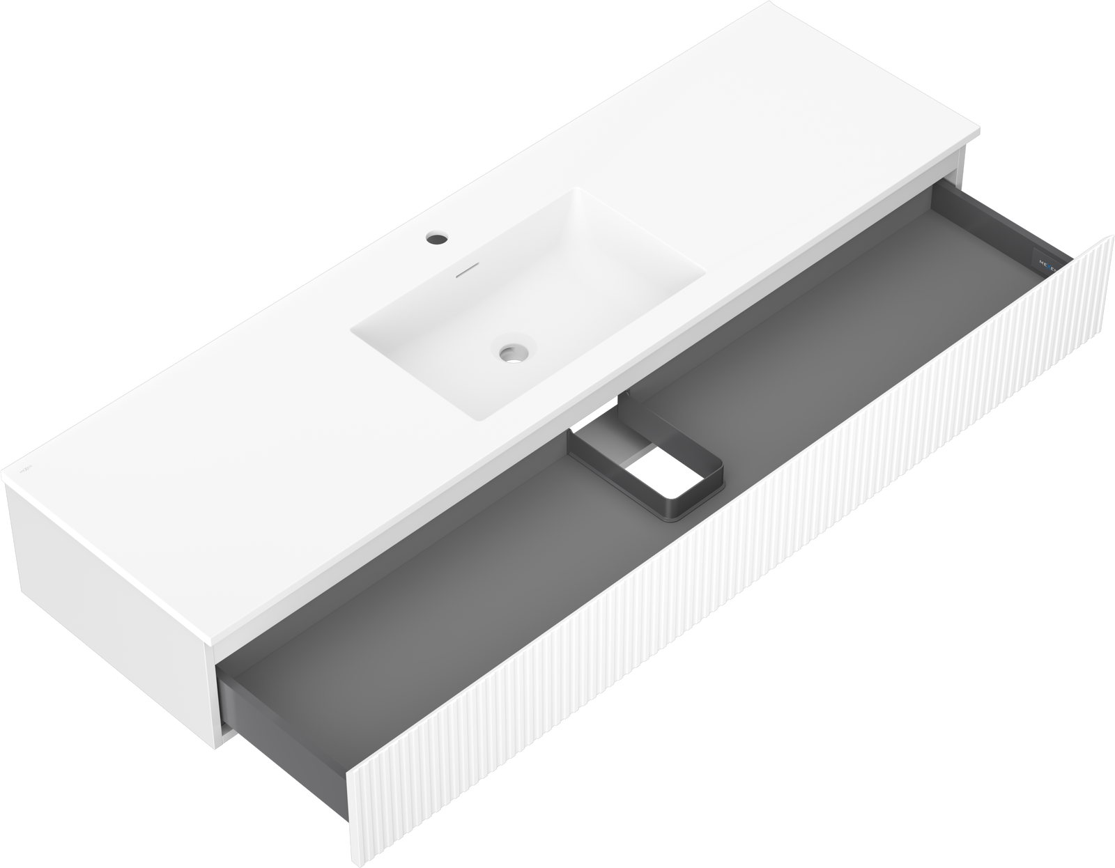 Mexen Rivel badkamerkast 160 cm met wastafel Otis, 1 lade, gegroefd, wit mat - 91A20-16023-1-BF01-W18M01