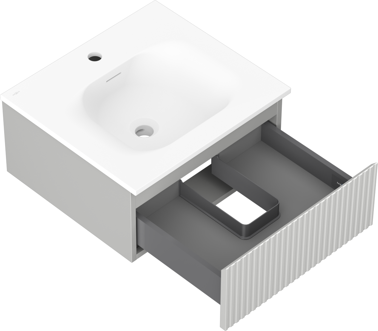 Mexen Rivel badkamerkast 50 cm met wastafel Vela, 1 lade, gefreesd, grijs mat/wit mat - 91A20-05023-1-BF62-W23M01