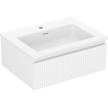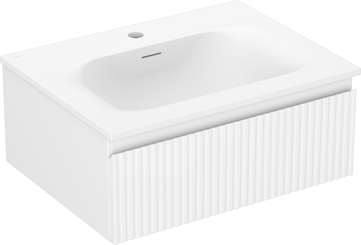 De wastafel heeft een gat waar je een kraan in kunt plaatsen. Dit bespaart kostbare ruimte in de badkamer en verbetert de esthetiek. Deze oplossing maakt het ook gemakkelijker om de ruimte rond de wastafel schoon te houden.