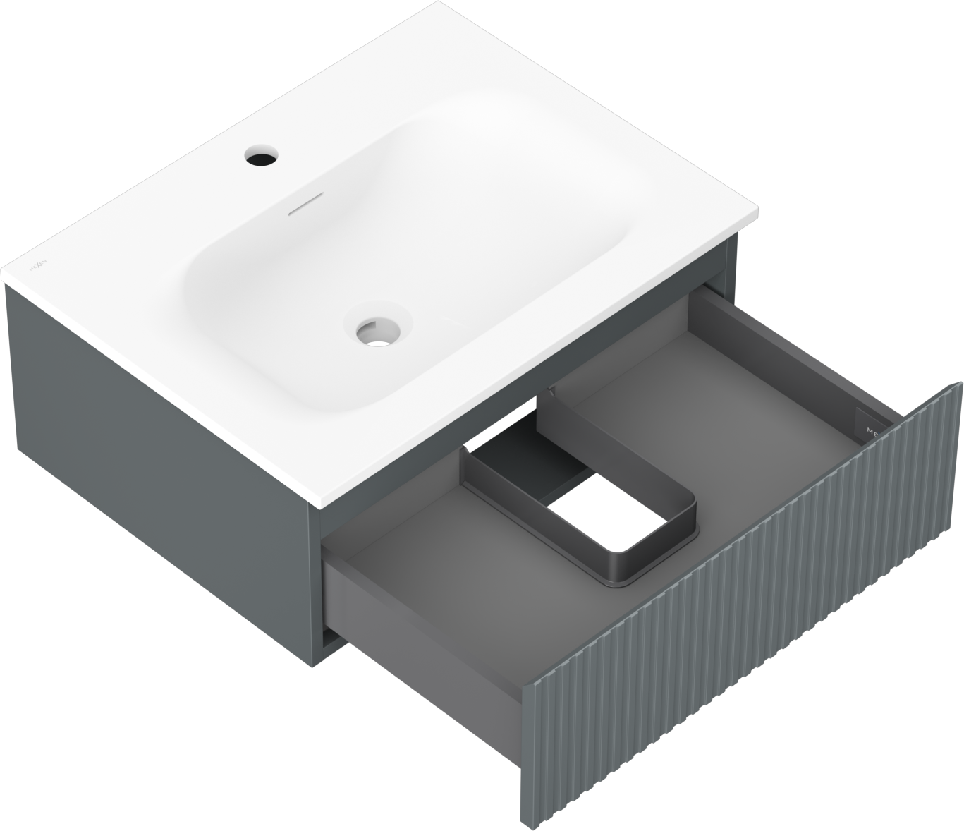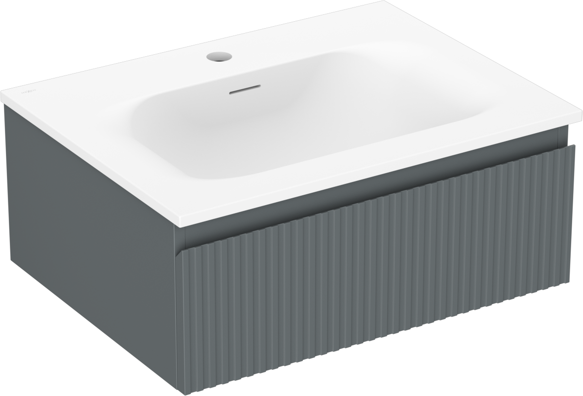 Mexen Rivel badkamerkast 60 cm met wastafel Vela, 1 lade, geribbeld, grafiet mat/wit mat - 91A20-06023-1-BF66-W23M01