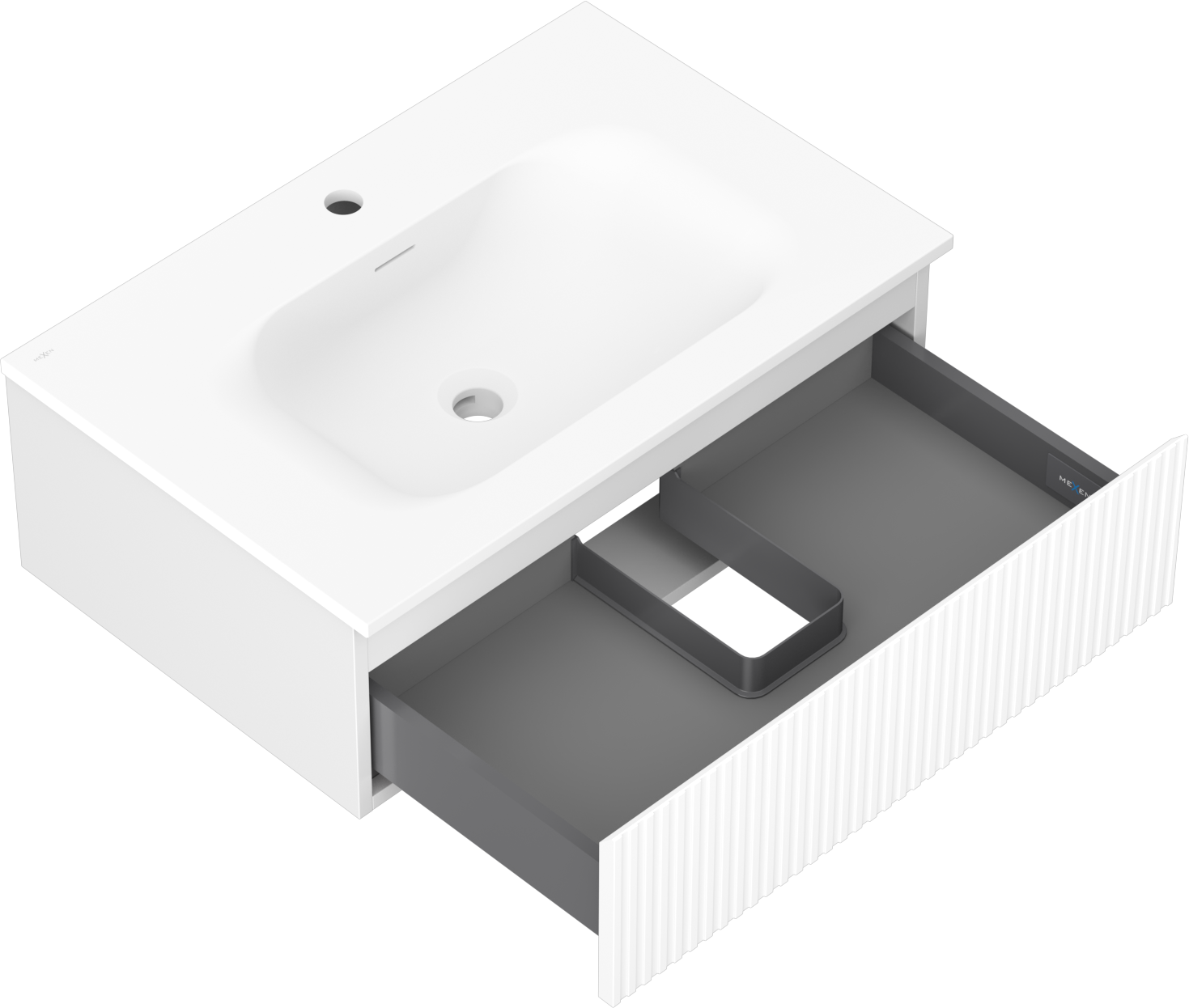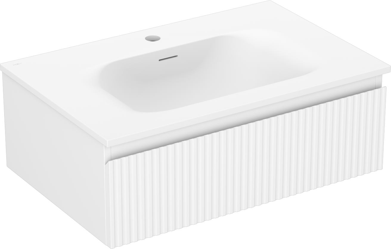 Mexen Rivel badkamerkast 70 cm met wastafel Vela, 1 lade, geribbeld, wit mat - 91A20-07023-1-BF01-W23M01