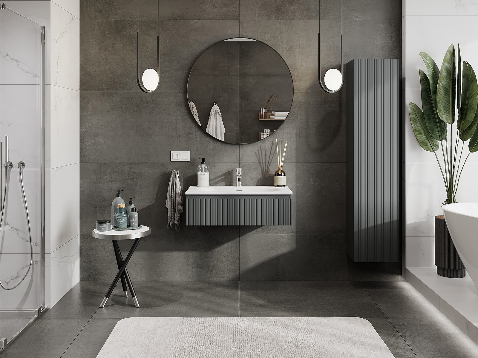 Mexen Rivel badkamerkast 80 cm met wastafel Vela, 1 lade, gegroefd, grafiet mat/wit mat - 91A20-08023-1-BF66-W23M01
