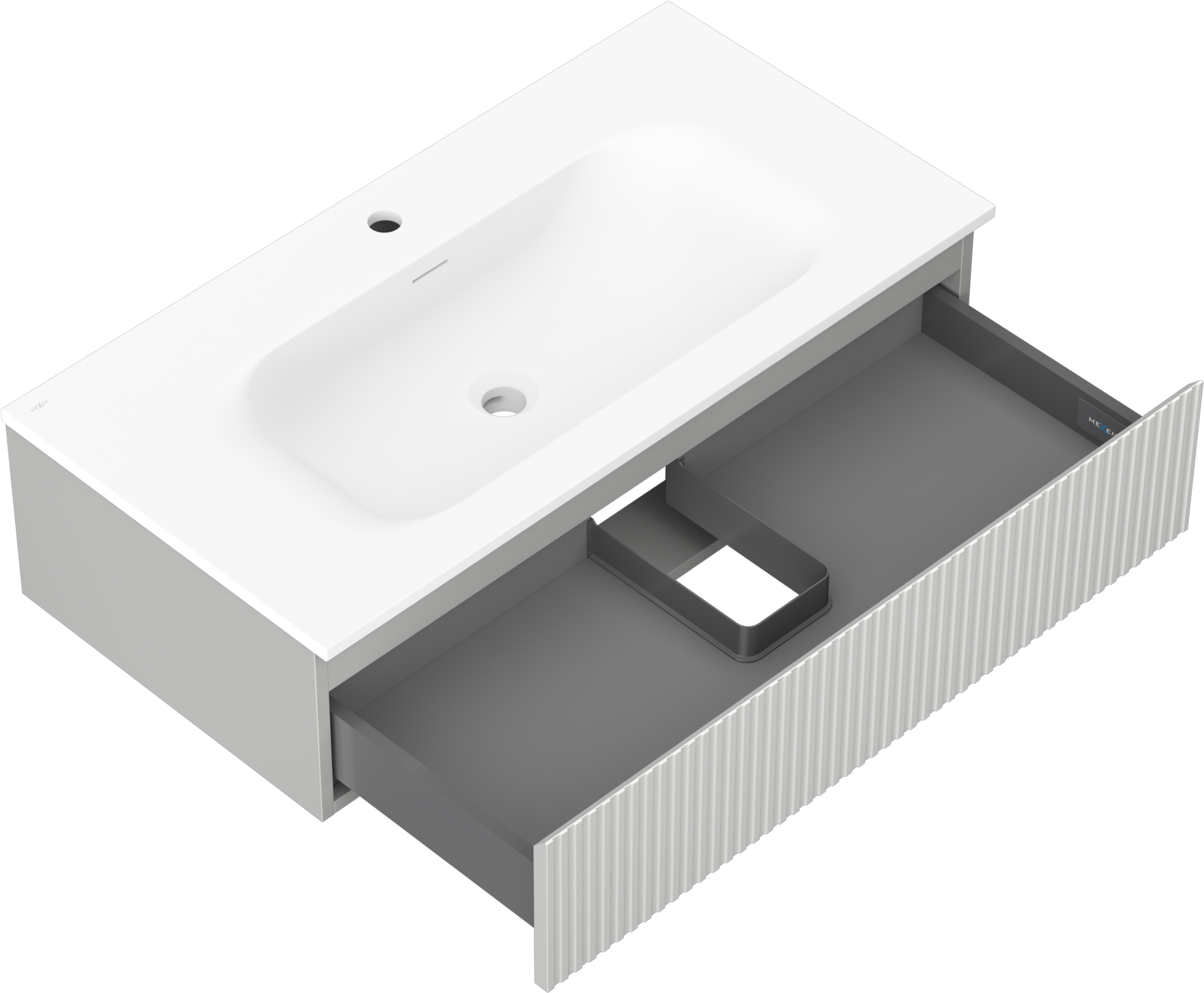 Mexen Rivel badkamerkast 90 cm met wastafel Vela, 1 lade, geribbeld, grijs mat / wit mat - 91A20-09023-1-BF62-W23M01