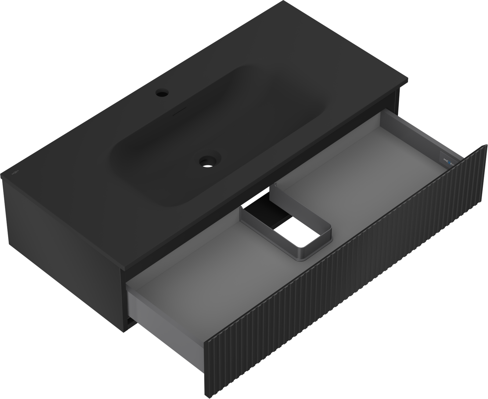 Mexen Rivel badkamerkast 100 cm met wastafel Vela, 1 lade, gegroefd, zwart mat - 91A20-10023-1-BF71-W23M71