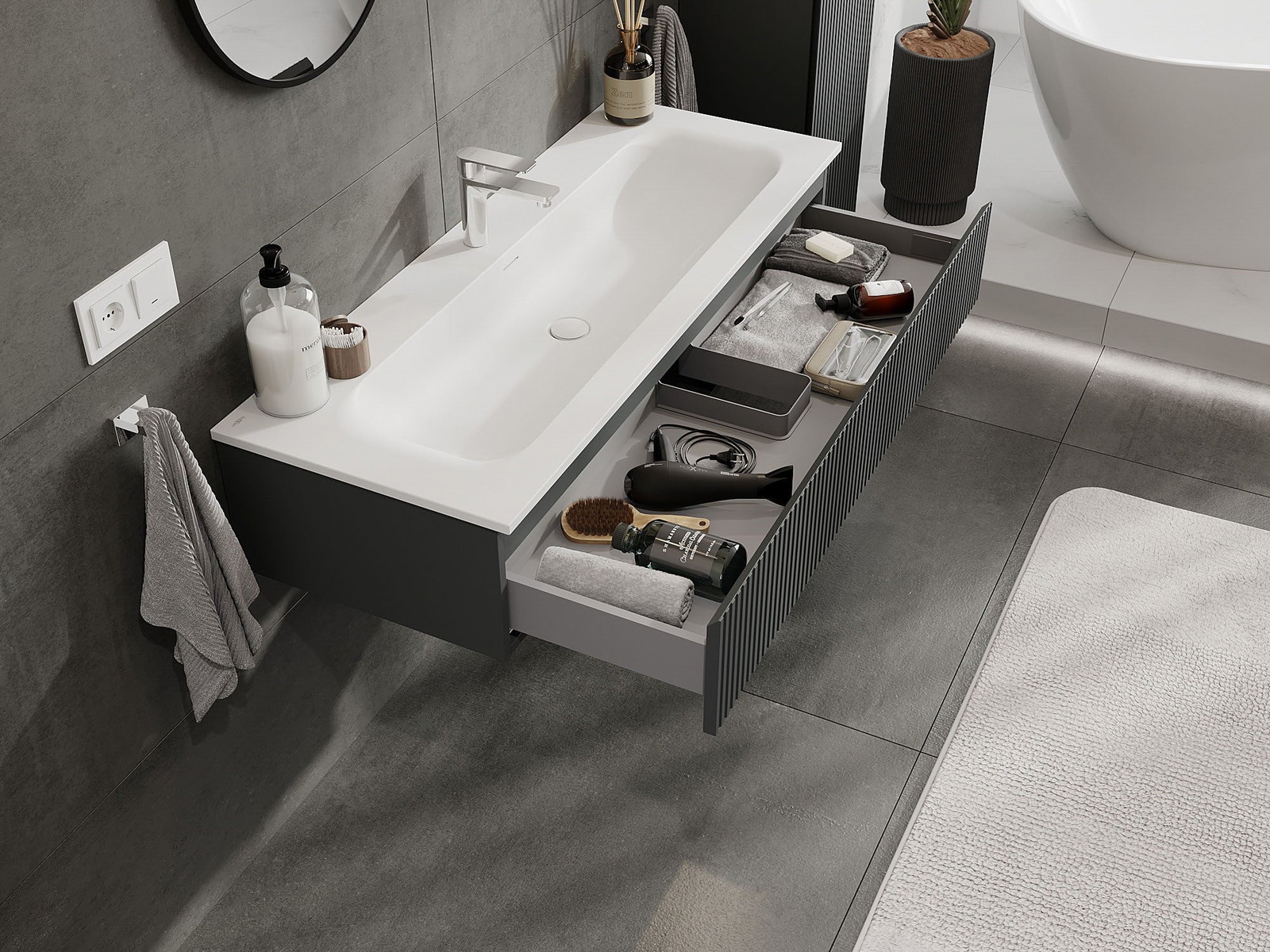 Mexen Rivel badkamerkast 120 cm met wastafel Vela, 1 lade, geribbeld, grafiet mat/wit mat - 91A20-12023-1-BF66-W23M0