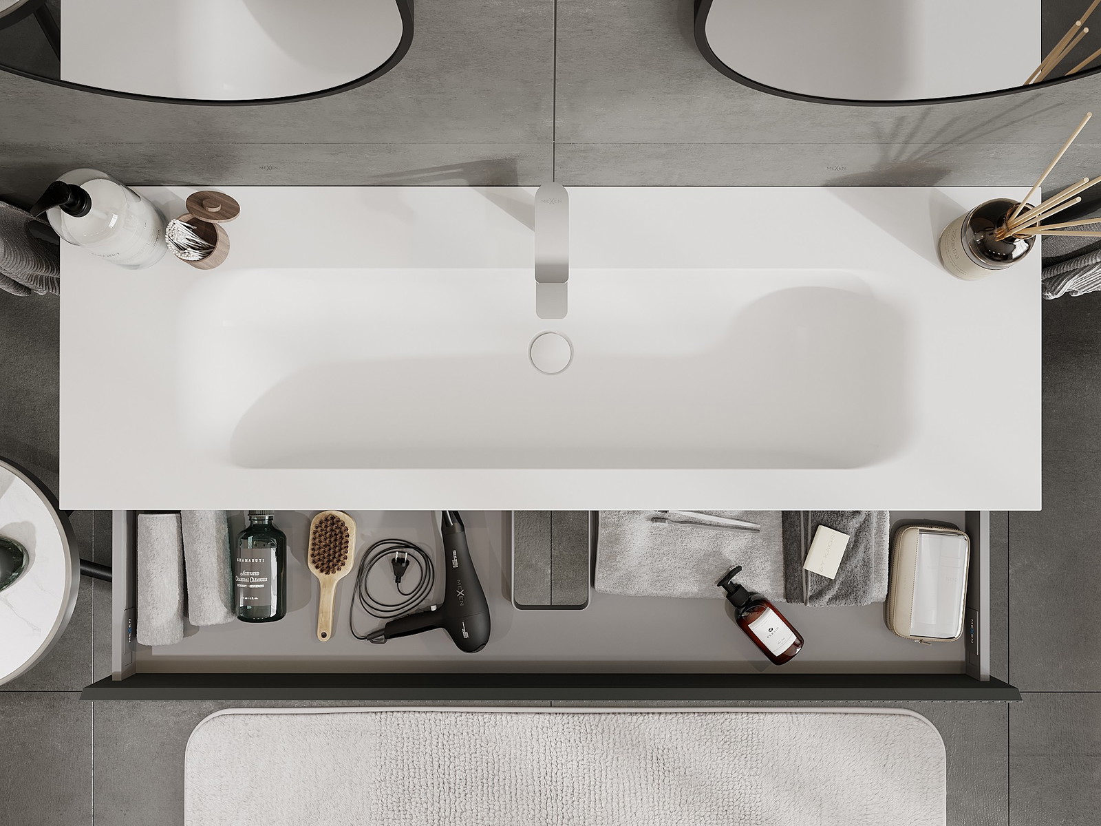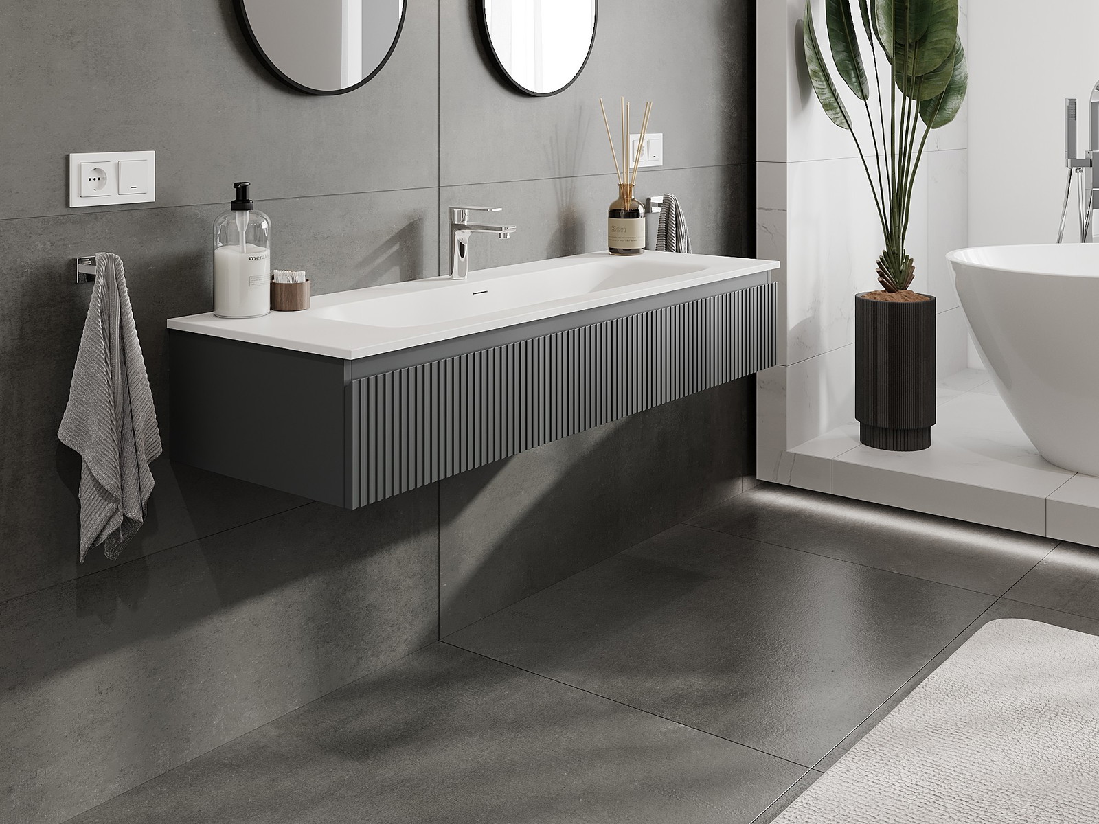 Mexen Rivel badkamerkast 140 cm met wastafel Vela, 1 lade, geribbeld, grafiet mat/wit mat - 91A20-14023-1-BF66-W23M0