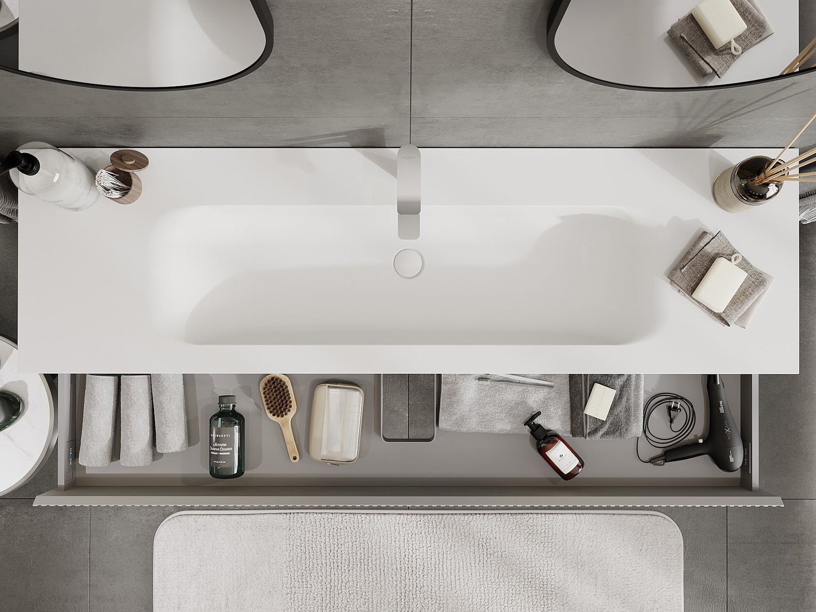 Onze modulaire badkamermeubels kunnen in verschillende kleurconfiguraties met elkaar worden gecombineerd, wat volledige personalisatie mogelijk maakt. Zowel het uiterlijk als de functies van de afzonderlijke elementen kunnen worden gekozen, waardoor de meubels kunnen worden aangepast aan persoonlijke stijlvoorkeuren en gebruikswensen.