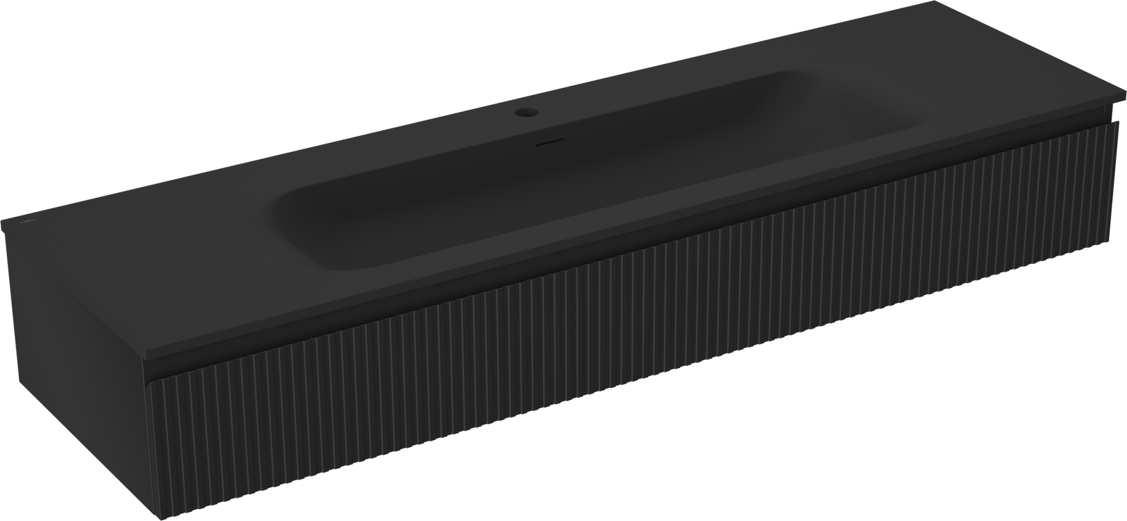 Mexen Rivel badkamerkast 160 cm met wastafel Vela, 1 lade, gegroefd, zwart mat - 91A20-16023-1-BF71-W23M71