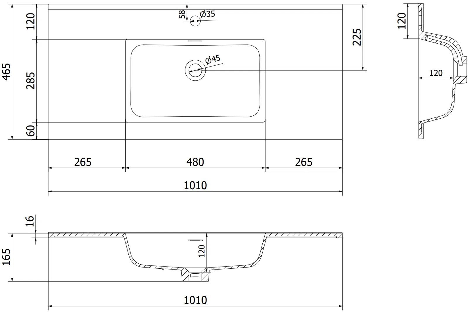 Afmetingen wastafel: