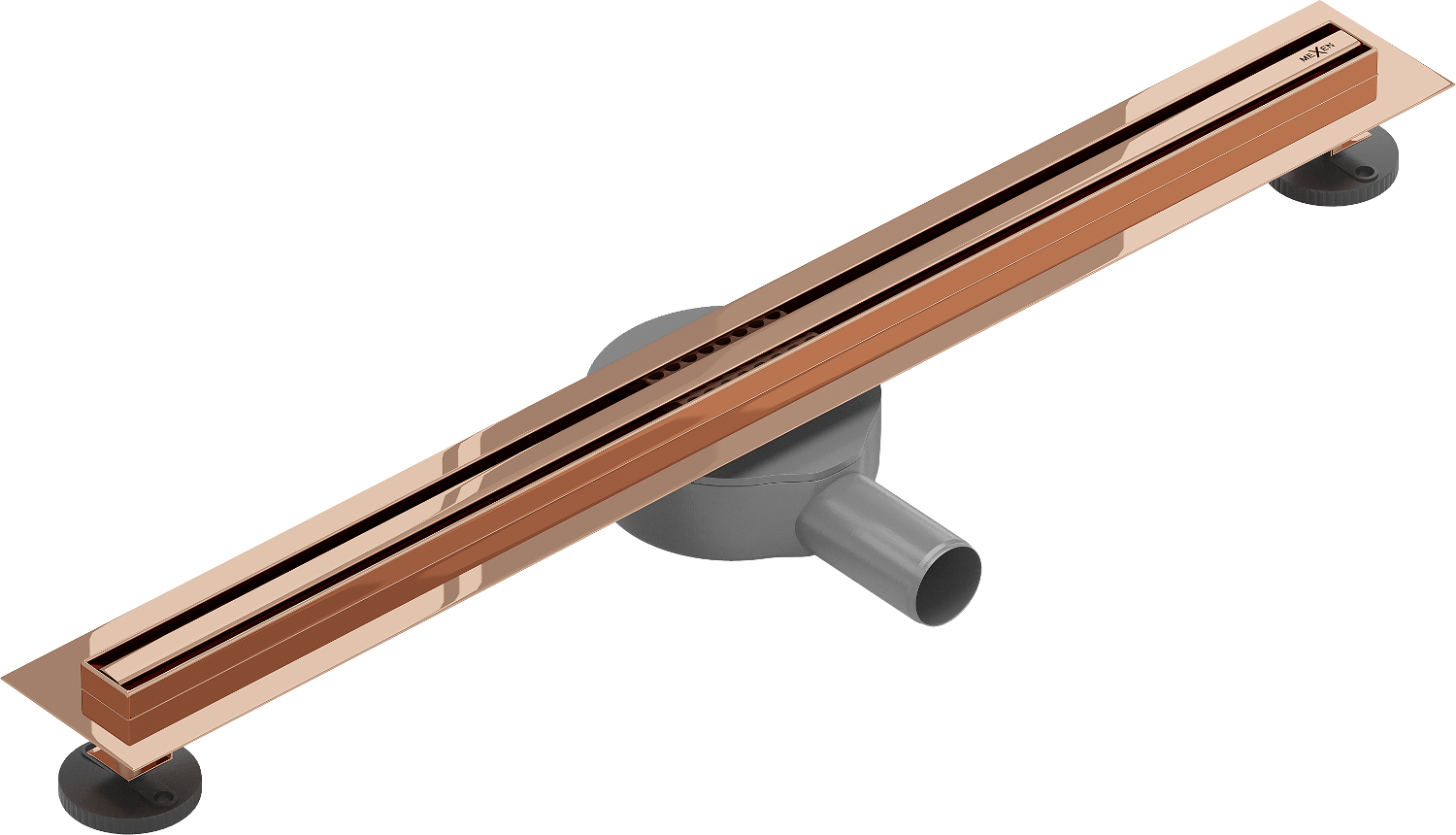 De afvoer is uitgerust met verstelbare pootjes, die het mogelijk maken om de juiste hoogte van de afvoer aan te passen en waterpas te stellen op een ongelijke ondergrond. Op deze manier is de afvoer nog beter aangepast aan de omstandigheden van de betreffende badkamer.