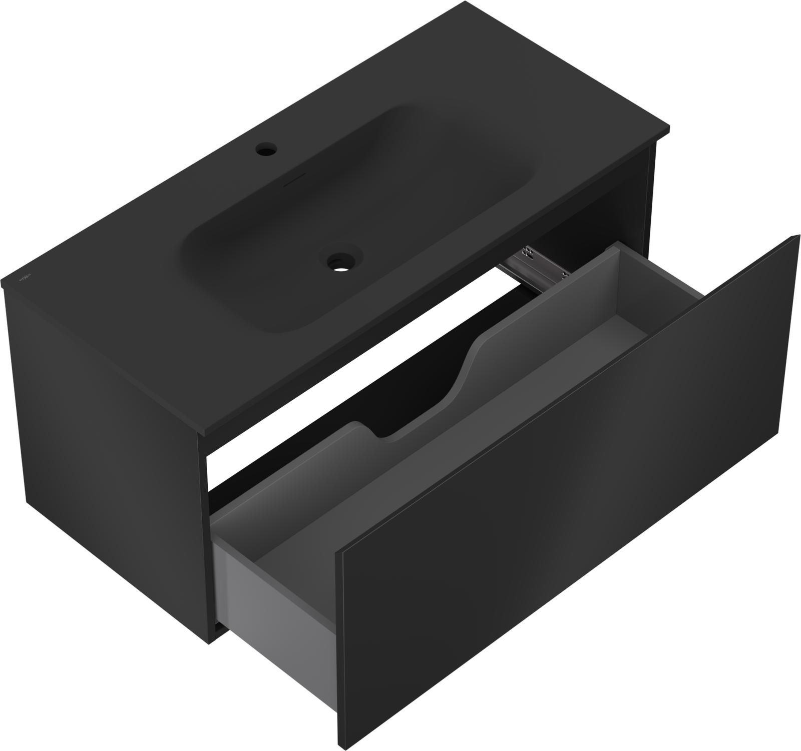 De uitsparing in de lade is zo ontworpen dat het de sifon kan bevatten, die noodzakelijk is in wastafelinstallaties. Hierdoor kan het meubel volledig functioneel worden gemonteerd, zonder dat er ruimte in de lade opgeofferd hoeft te worden voor installatiedoeleinden.