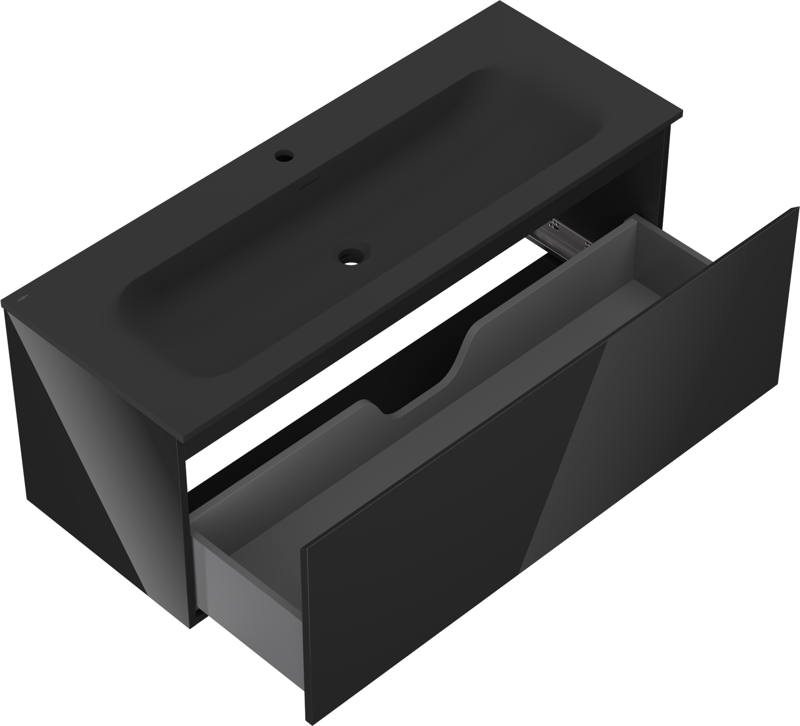 Mexen Orio badkamerkast 120 cm met wastafel Vela, 1 lade, zwart glans/zwart mat - 91A10-12047-1-BF70-W23M71