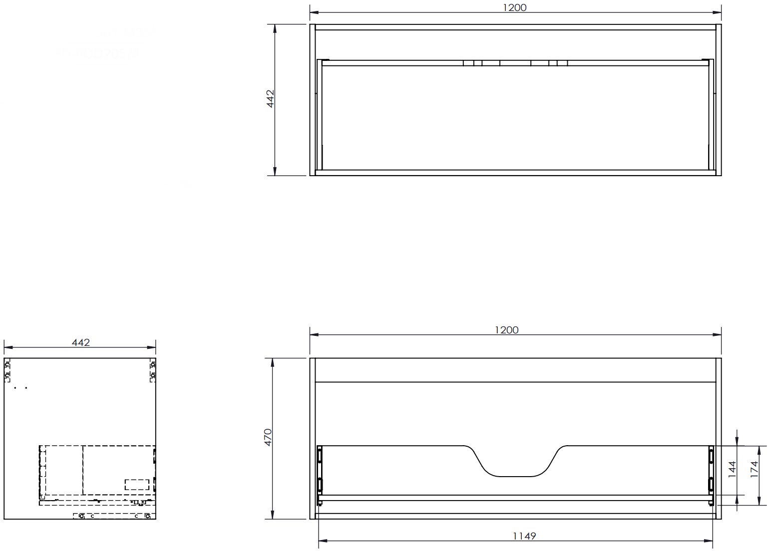 De uitsparing in de lade is zo ontworpen dat het de sifon kan bevatten, die noodzakelijk is in wastafelinstallaties. Hierdoor kan het meubel volledig functioneel worden gemonteerd, zonder dat er ruimte in de lade opgeofferd hoeft te worden voor installatiedoeleinden.