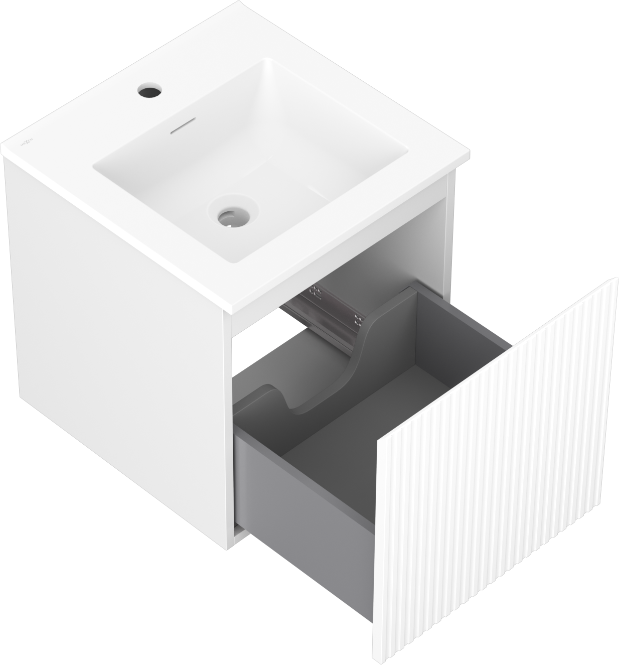 Mexen Rivel badkamerkast 45 cm met wastafel Otis, 1 lade, geribbeld, wit mat - 91A20-04547-1-BF01-W18M01
