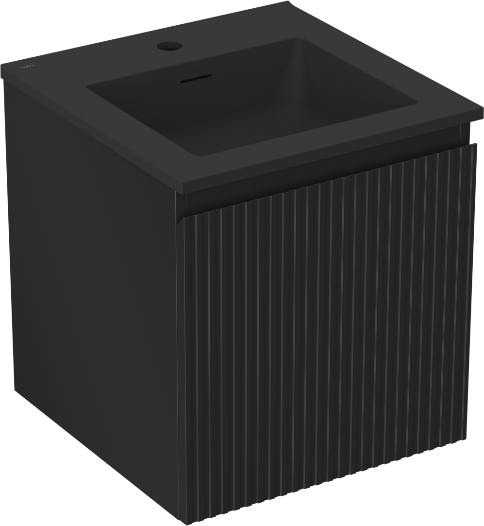 Mexen Rivel badkamerkast 45 cm met Otis wastafel, 1 lade, gefreesd, zwart mat - 91A20-04547-1-BF71-W18M71