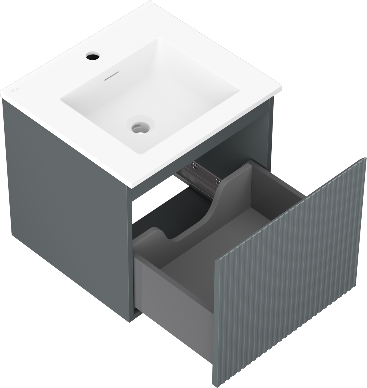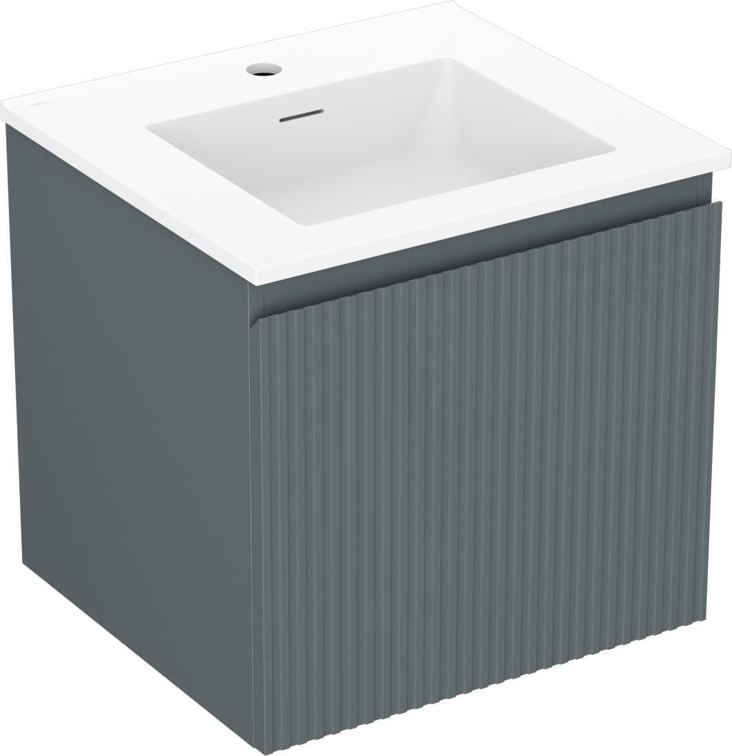 Mexen Rivel badkamerkast 50 cm met Otis wastafel, 1 lade, geribbeld, grafiet mat/wit mat - 91A20-05047-1-BF66-W18M01
