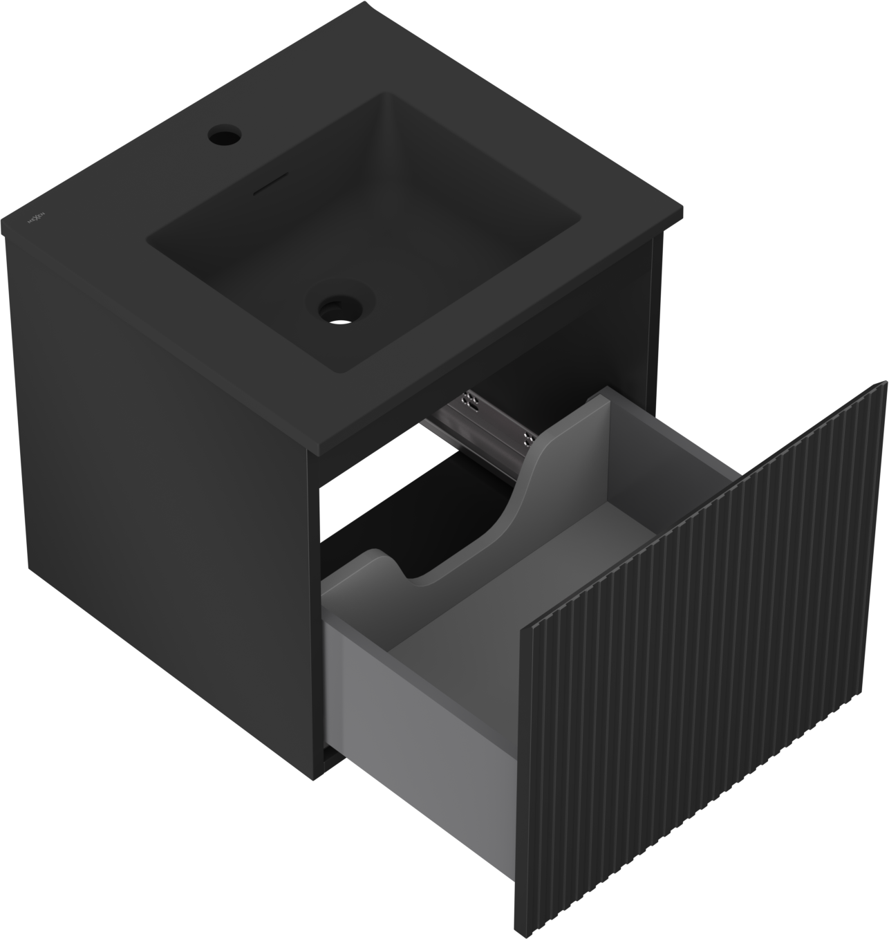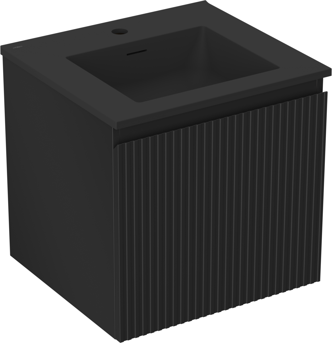 Mexen Rivel badkamerkast 50 cm met wastafel Otis, 1 lade, gegroefd, zwart mat - 91A20-05047-1-BF71-W18M71