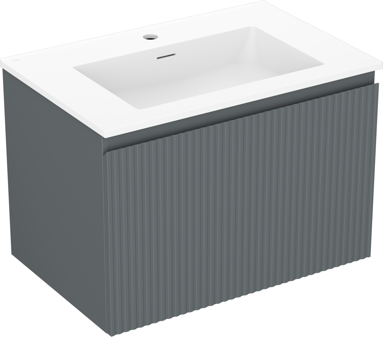 Mexen Rivel badkamerkast 70 cm met wastafel Otis, 1 lade, geribbeld, grafiet mat/wit mat - 91A20-07047-1-BF66-W18M01