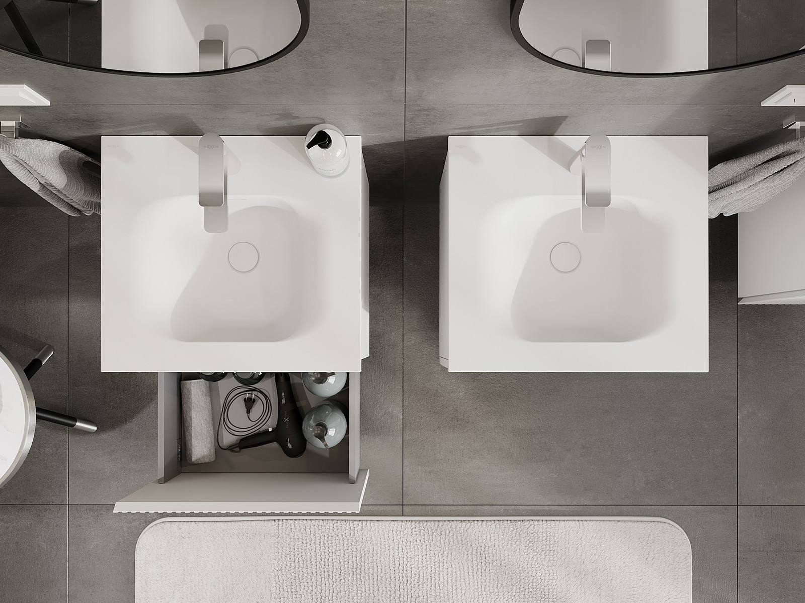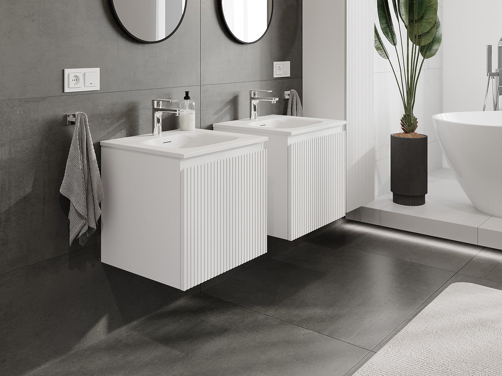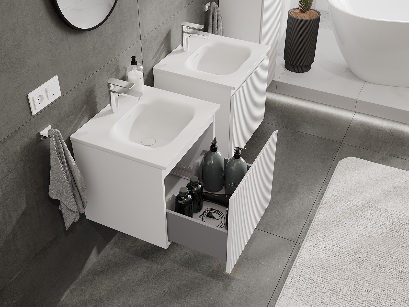 Onze modulaire badkamermeubels kunnen in verschillende kleurconfiguraties met elkaar worden gecombineerd, wat volledige personalisatie mogelijk maakt. Zowel het uiterlijk als de functies van de afzonderlijke elementen kunnen worden gekozen, waardoor de meubels kunnen worden aangepast aan persoonlijke stijlvoorkeuren en gebruikswensen.