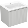 De wastafel heeft een gat waar je een kraan in kunt plaatsen. Dit bespaart kostbare ruimte in de badkamer en verbetert de esthetiek. Deze oplossing maakt het ook gemakkelijker om de ruimte rond de wastafel schoon te houden.