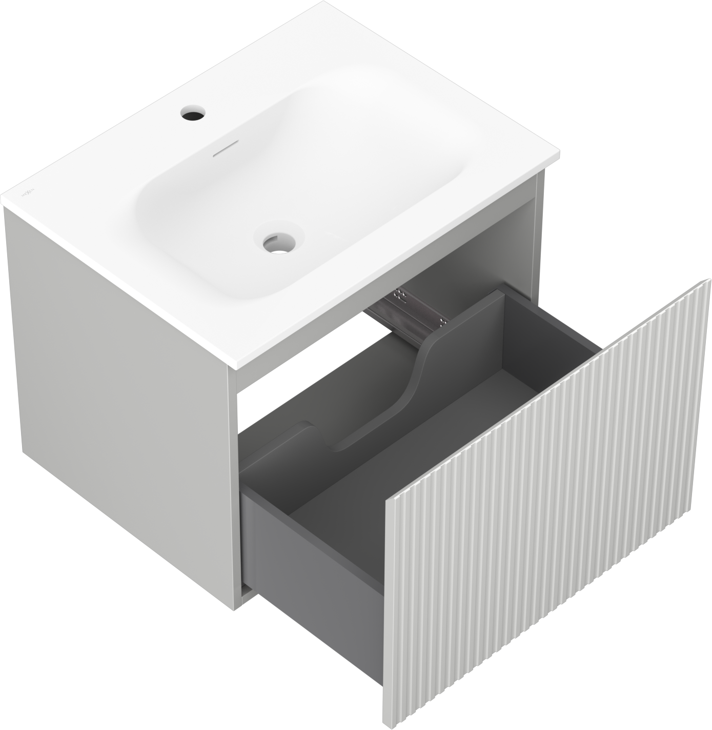 Mexen Rivel badkamerkast 60 cm met wastafel Vela, 1 lade, geribbeld, grijs mat/wit mat - 91A20-06047-1-BF62-W23M01