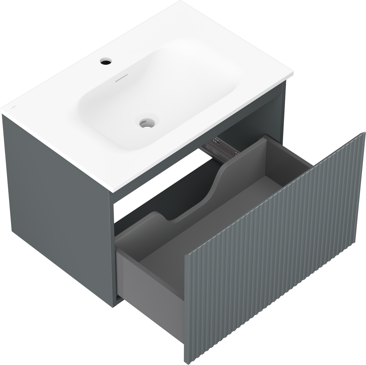 Mexen Rivel badmeubel 70 cm met wastafel Vela, 1 lade, gegroefd, grafiet mat/wit mat - 91A20-07047-1-BF66-W23M01