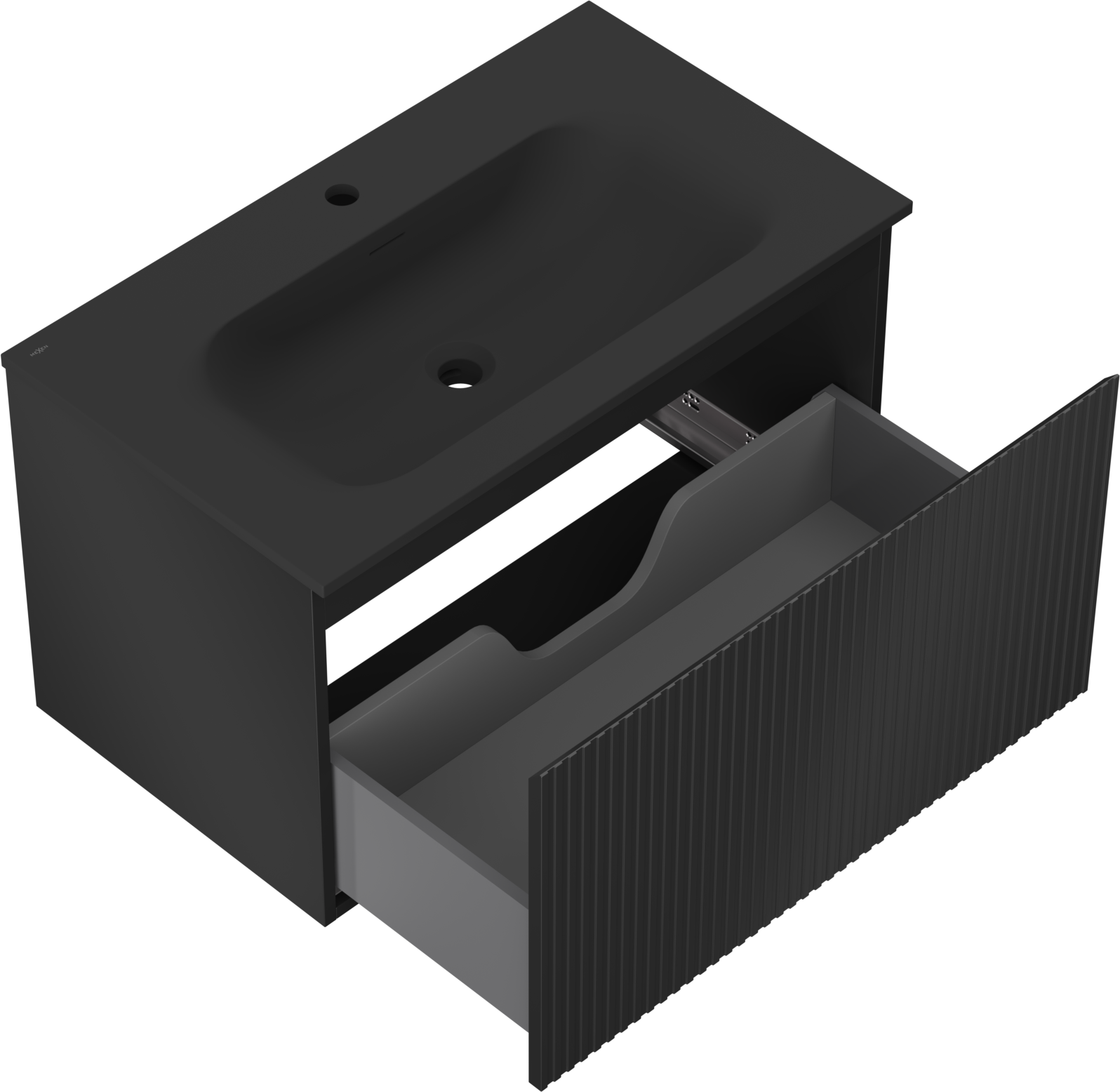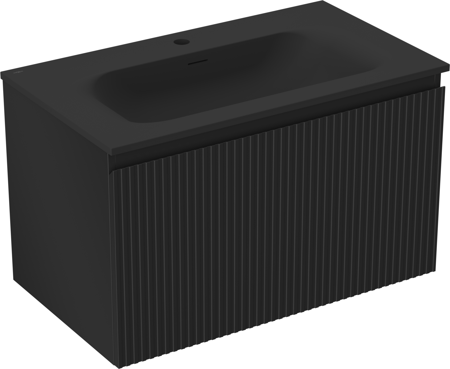 Mexen Rivel badkamerkast 80 cm met wastafel Vela, 1 lade, geribbeld, zwart mat - 91A20-08047-1-BF71-W23M71