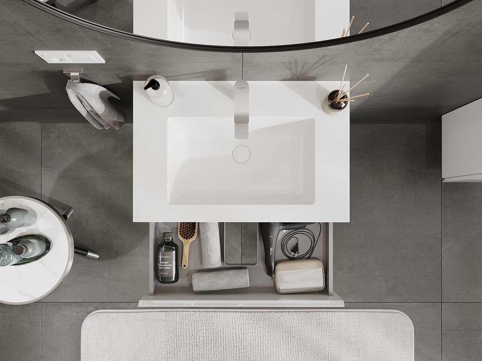Mexen Orio badkamerkast 70 cm met wastafel Otis, 2 laden, witte glans - 91A10-07047-2-BFF00-W18M00