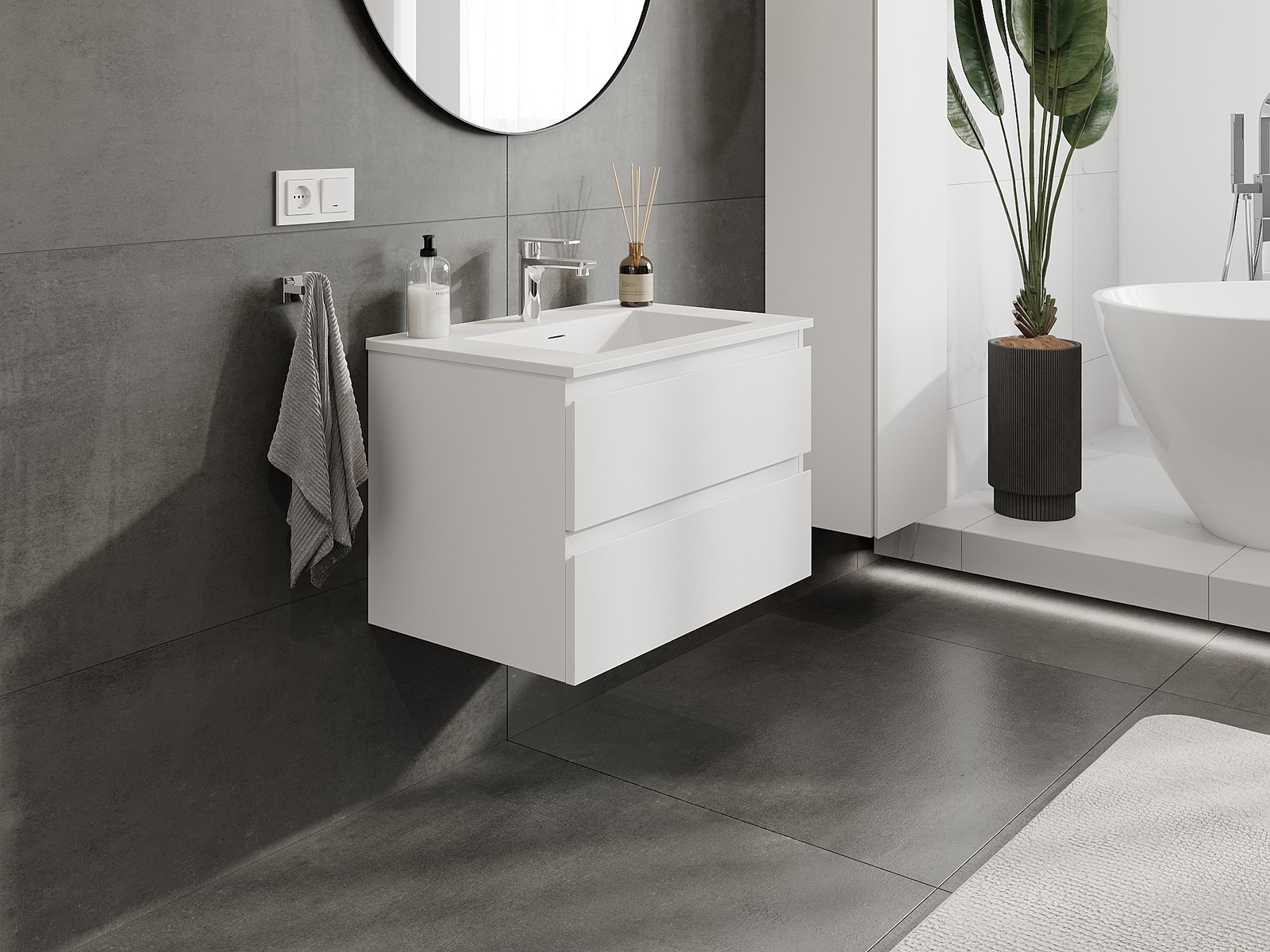 Onze modulaire badkamermeubels kunnen in verschillende kleurconfiguraties met elkaar worden gecombineerd, wat volledige personalisatie mogelijk maakt. Zowel het uiterlijk als de functies van de afzonderlijke elementen kunnen worden gekozen, waardoor de meubels kunnen worden aangepast aan persoonlijke stijlvoorkeuren en gebruikswensen.