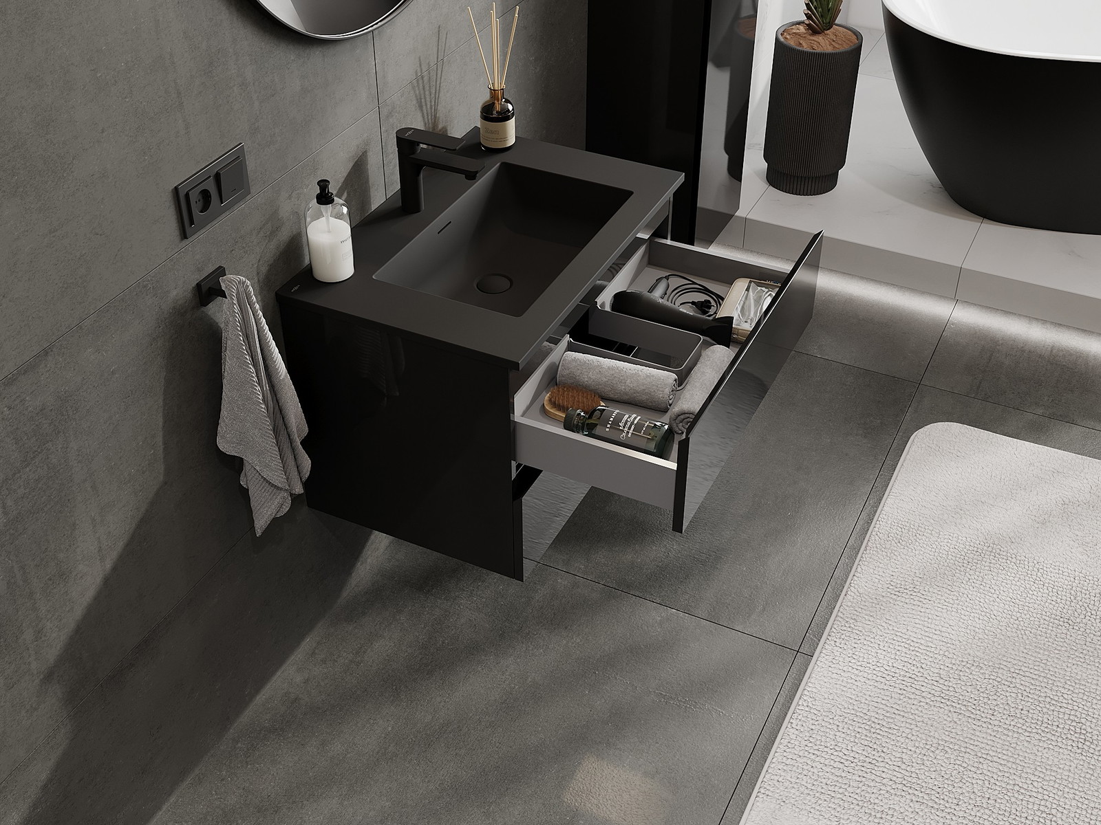 Onze modulaire badkamermeubels kunnen in verschillende kleurconfiguraties met elkaar worden gecombineerd, wat volledige personalisatie mogelijk maakt. Zowel het uiterlijk als de functies van de afzonderlijke elementen kunnen worden gekozen, waardoor de meubels kunnen worden aangepast aan persoonlijke stijlvoorkeuren en gebruikswensen.