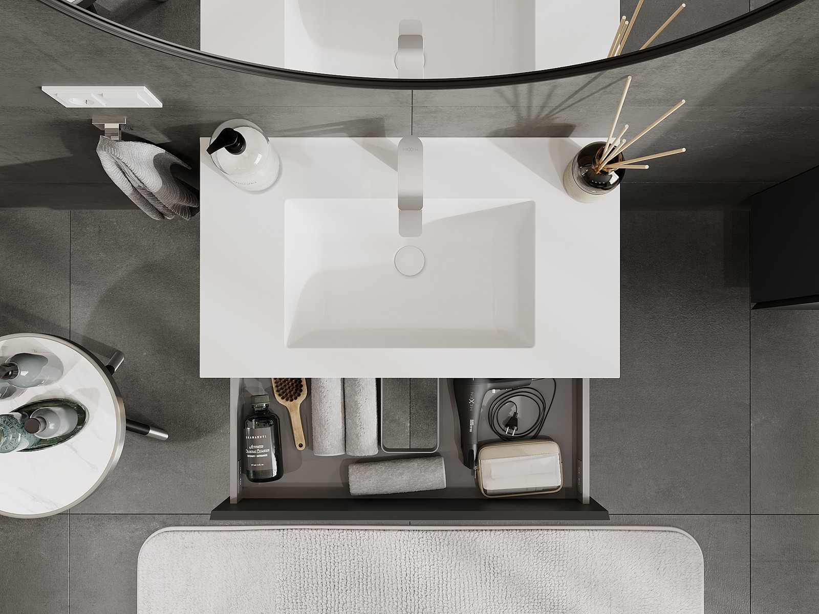 Mexen Orio badkamerkast 80 cm met wastafel Otis, 2 laden, grafiet mat/wit mat - 91A10-08047-2-BFF66-W18M01