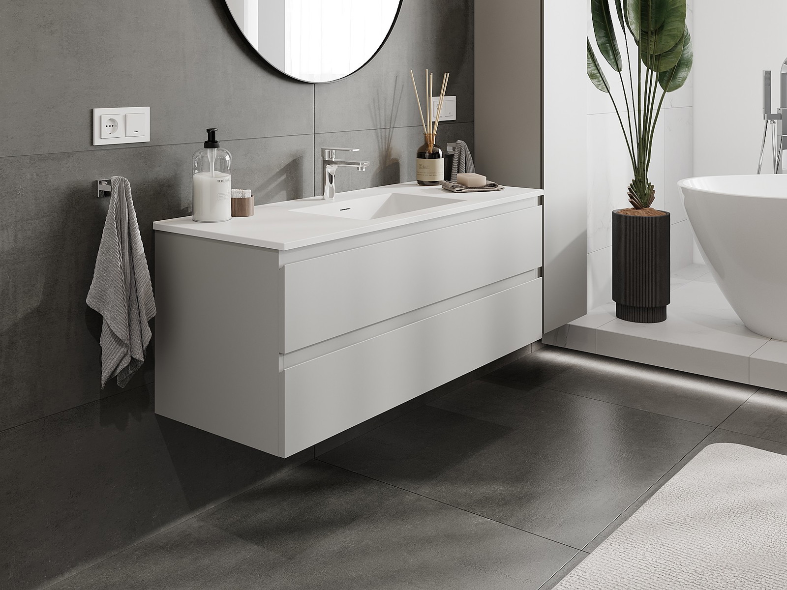 Onze modulaire badkamermeubels kunnen in verschillende kleurconfiguraties met elkaar worden gecombineerd, wat volledige personalisatie mogelijk maakt. Zowel het uiterlijk als de functies van de afzonderlijke elementen kunnen worden gekozen, waardoor de meubels kunnen worden aangepast aan persoonlijke stijlvoorkeuren en gebruikswensen.