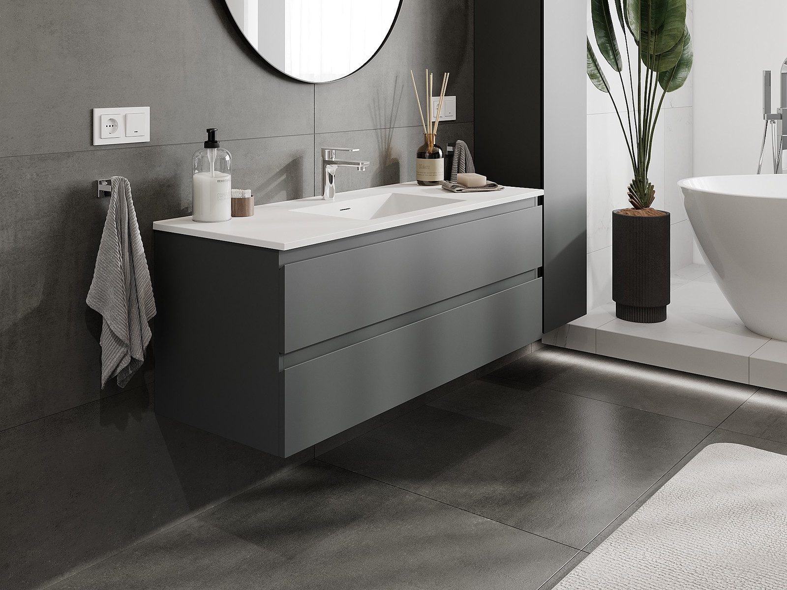 Onze modulaire badkamermeubels kunnen in verschillende kleurconfiguraties met elkaar worden gecombineerd, wat volledige personalisatie mogelijk maakt. Zowel het uiterlijk als de functies van de afzonderlijke elementen kunnen worden gekozen, waardoor de meubels kunnen worden aangepast aan persoonlijke stijlvoorkeuren en gebruikswensen.